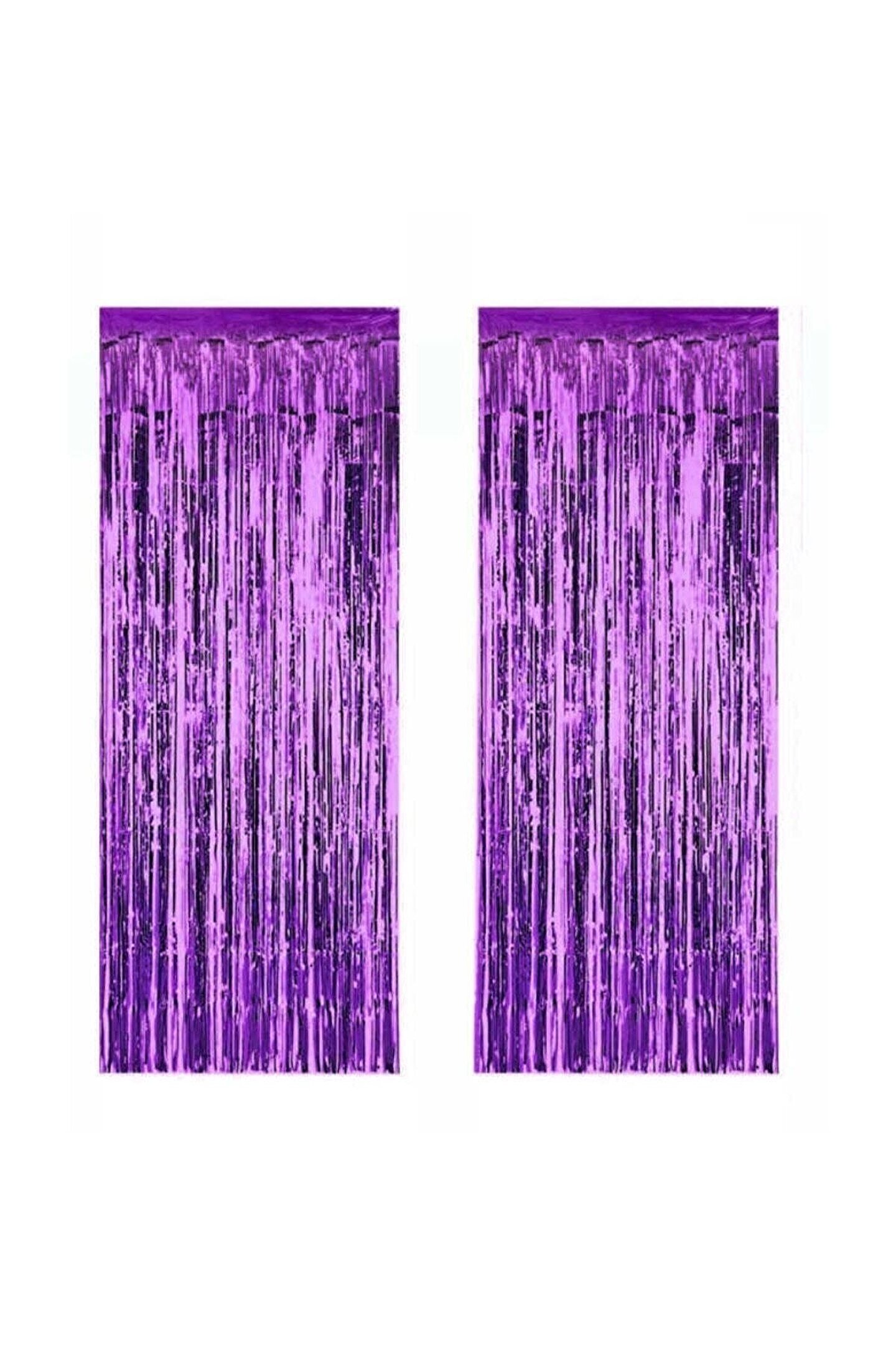 2 Adet Kapı Perdesi Kapı Banner Fon Süsü Metalize Mor