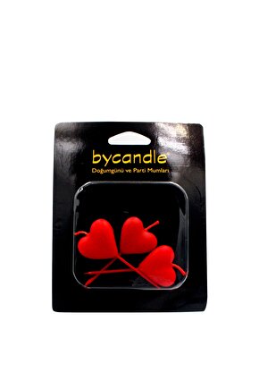 14Süs 3 Lü Kırmızı Kalp Mum