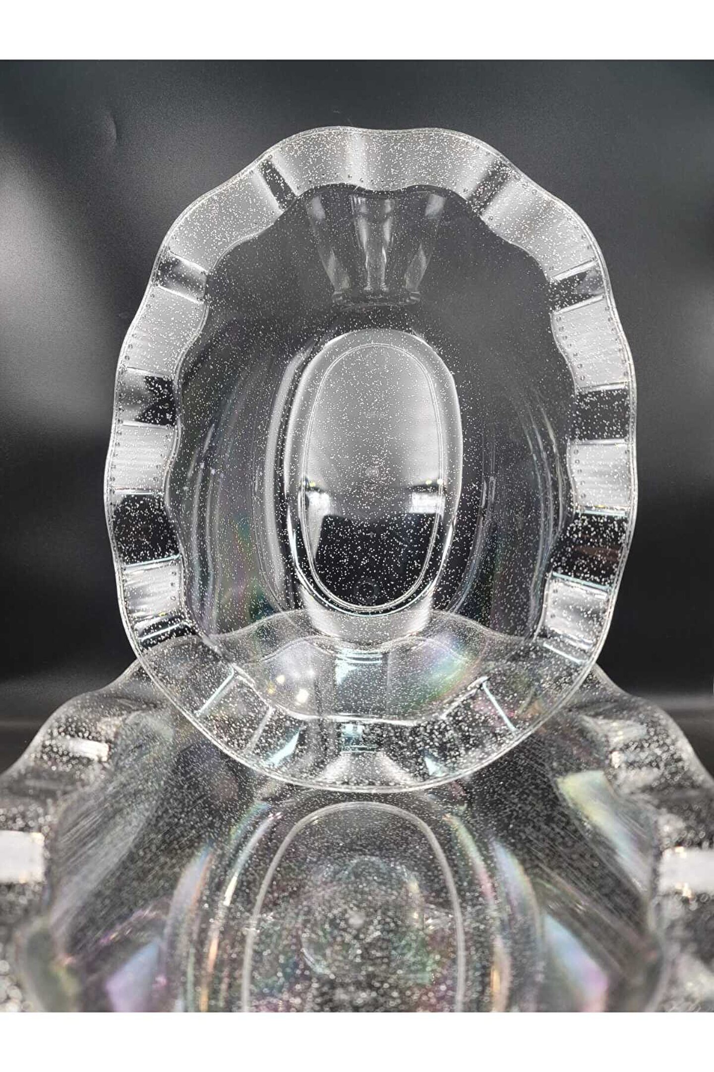 14Süs Mika Lüks Plastik Salata Kasesi Simli Gümüş 3 Adet