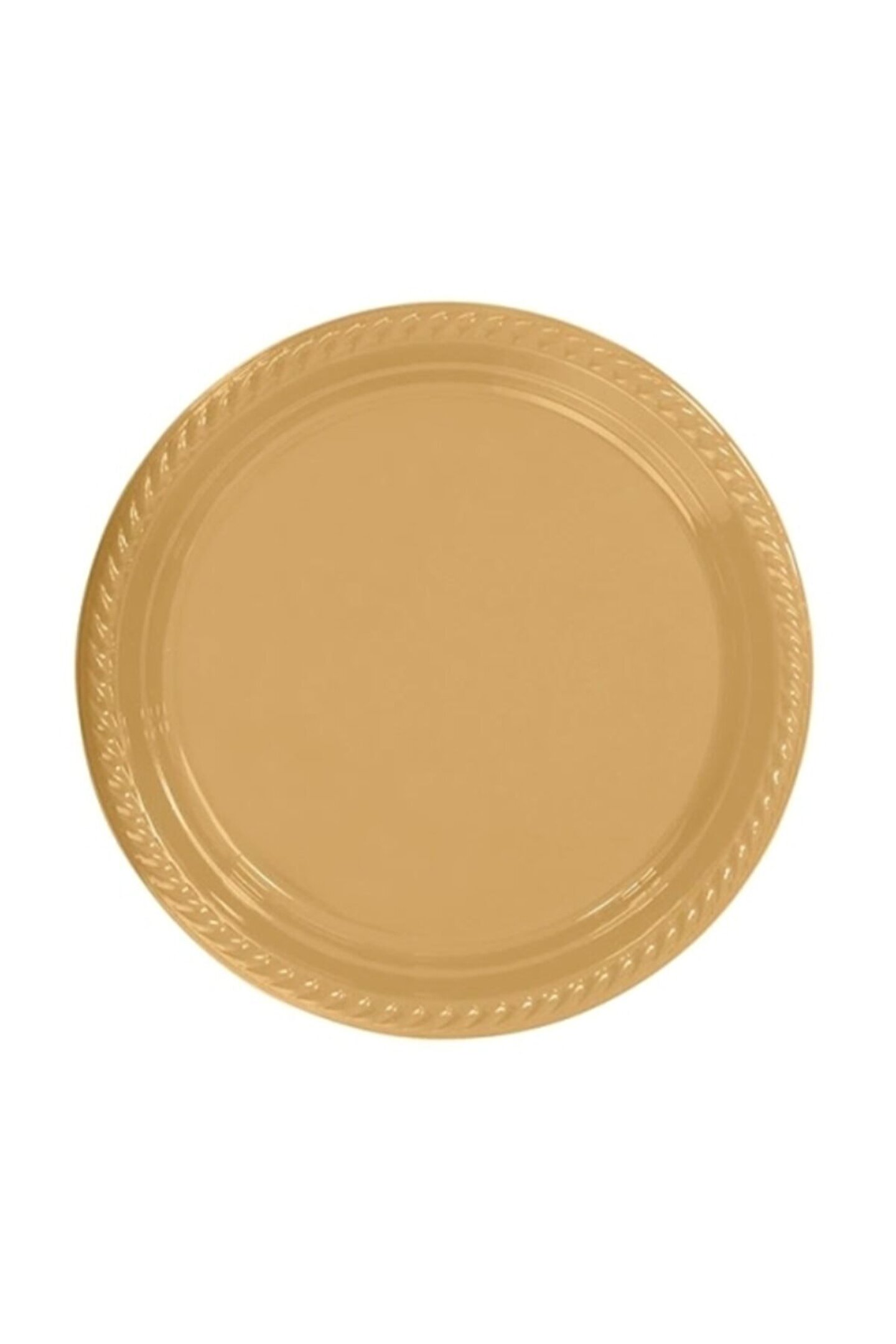 14Süs Plastik Tabak Çap 22cm 25 Adet 1 Paket Renk Gold