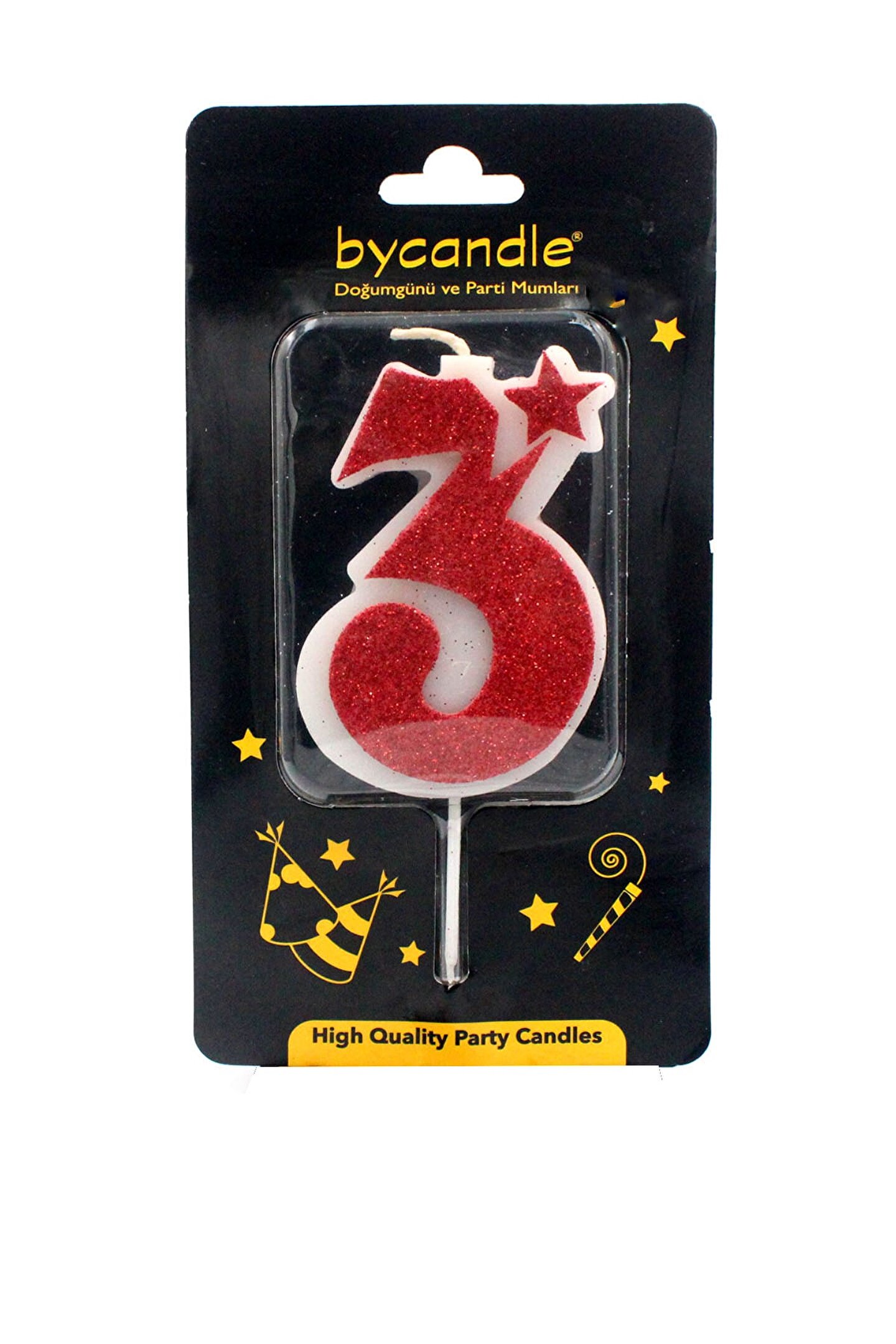 14Süs Simli Kırmızı Rakam Mum-3