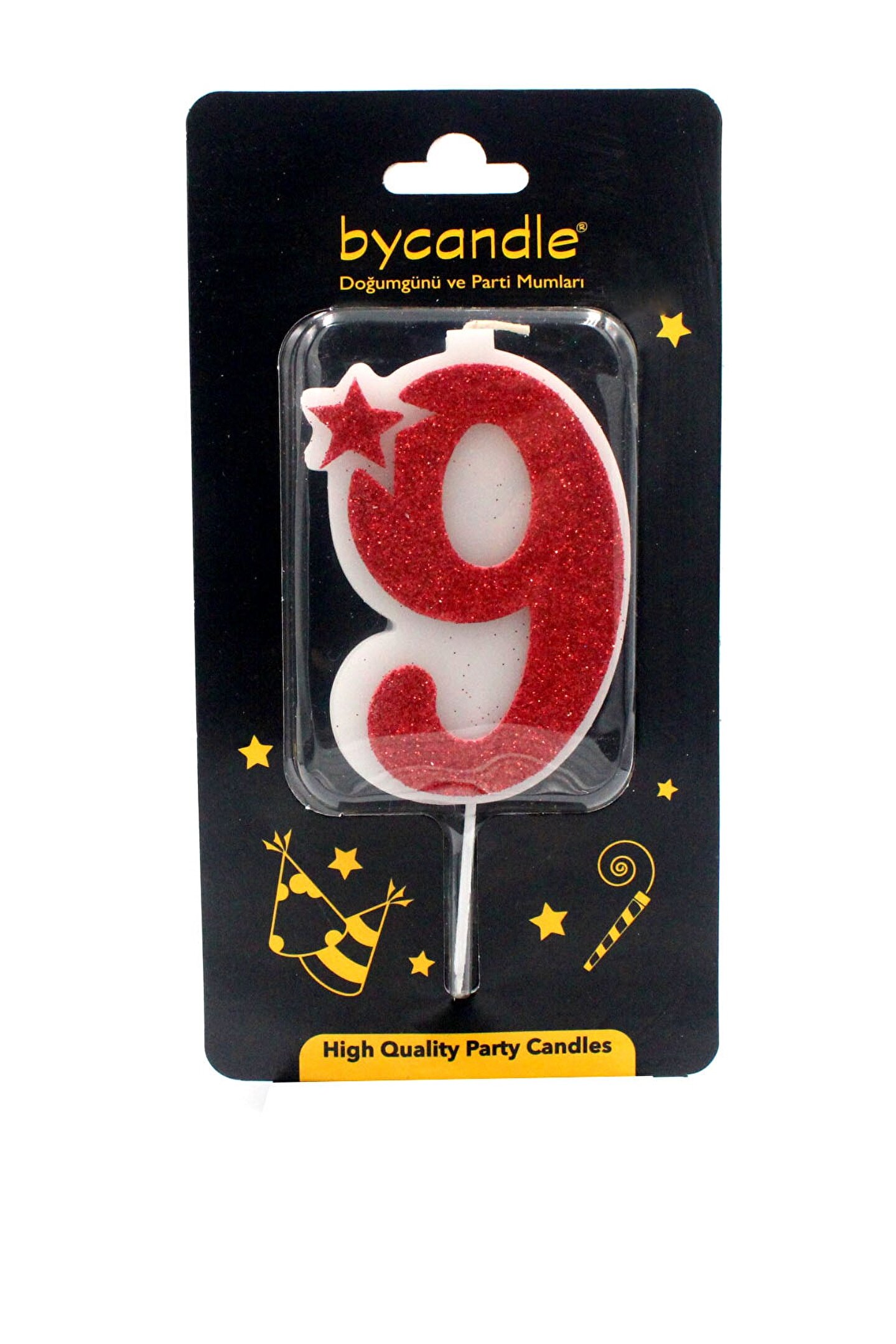 14Süs Simli Kırmızı Rakam Mum-9