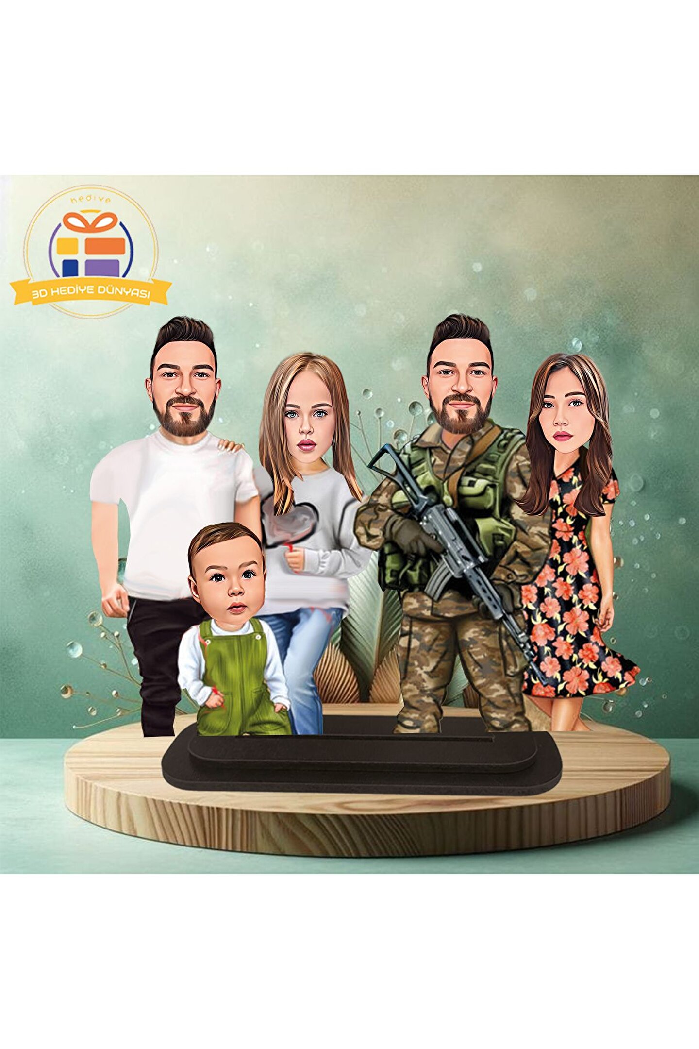 askeriye aile asker ailesi karikatürü biblo hediye 3d masa üstü biblo hediyesi