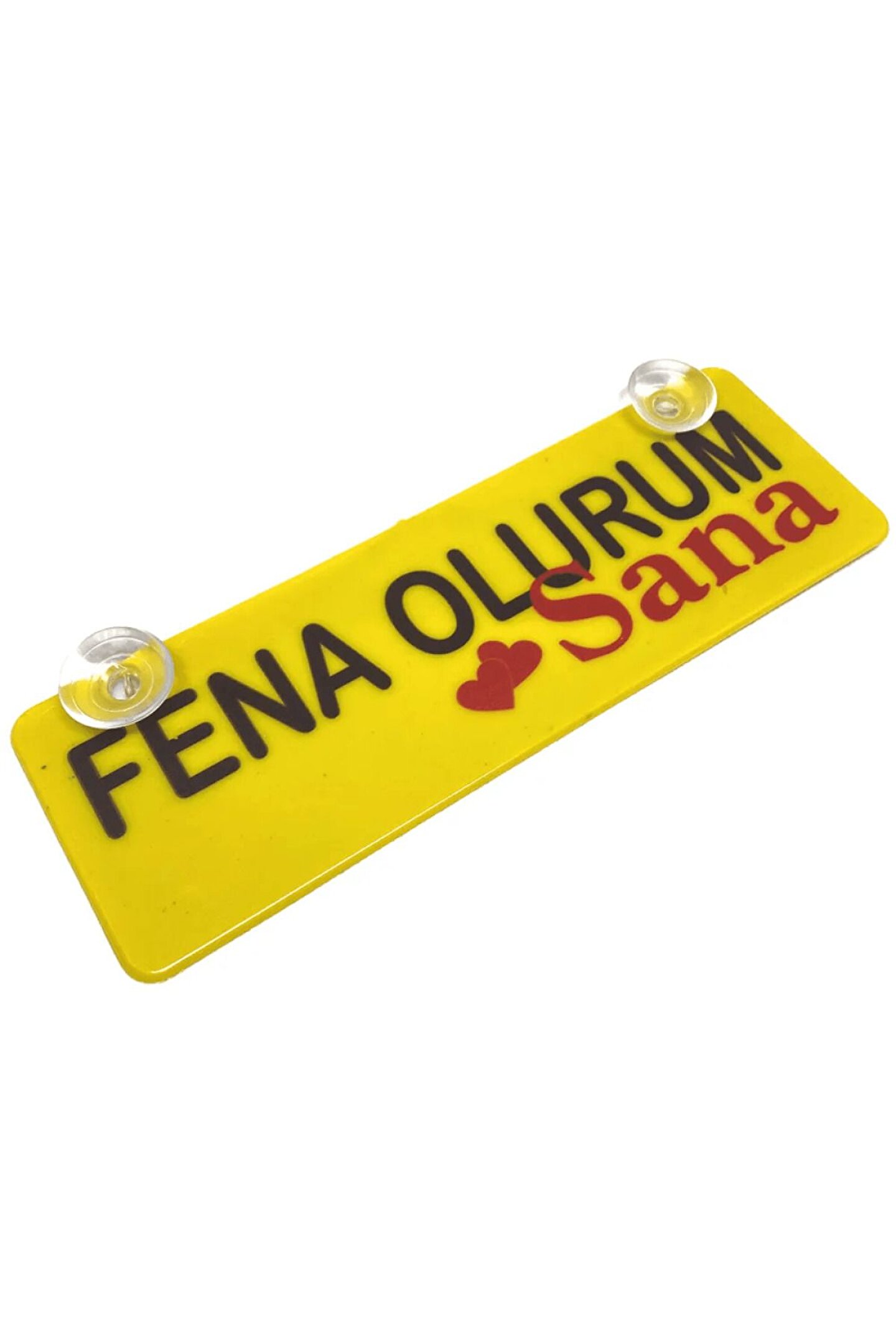 Fena Olurum Sana Yazılı Sarı Dekor Plaka Vantuzlu Cam Süsü
