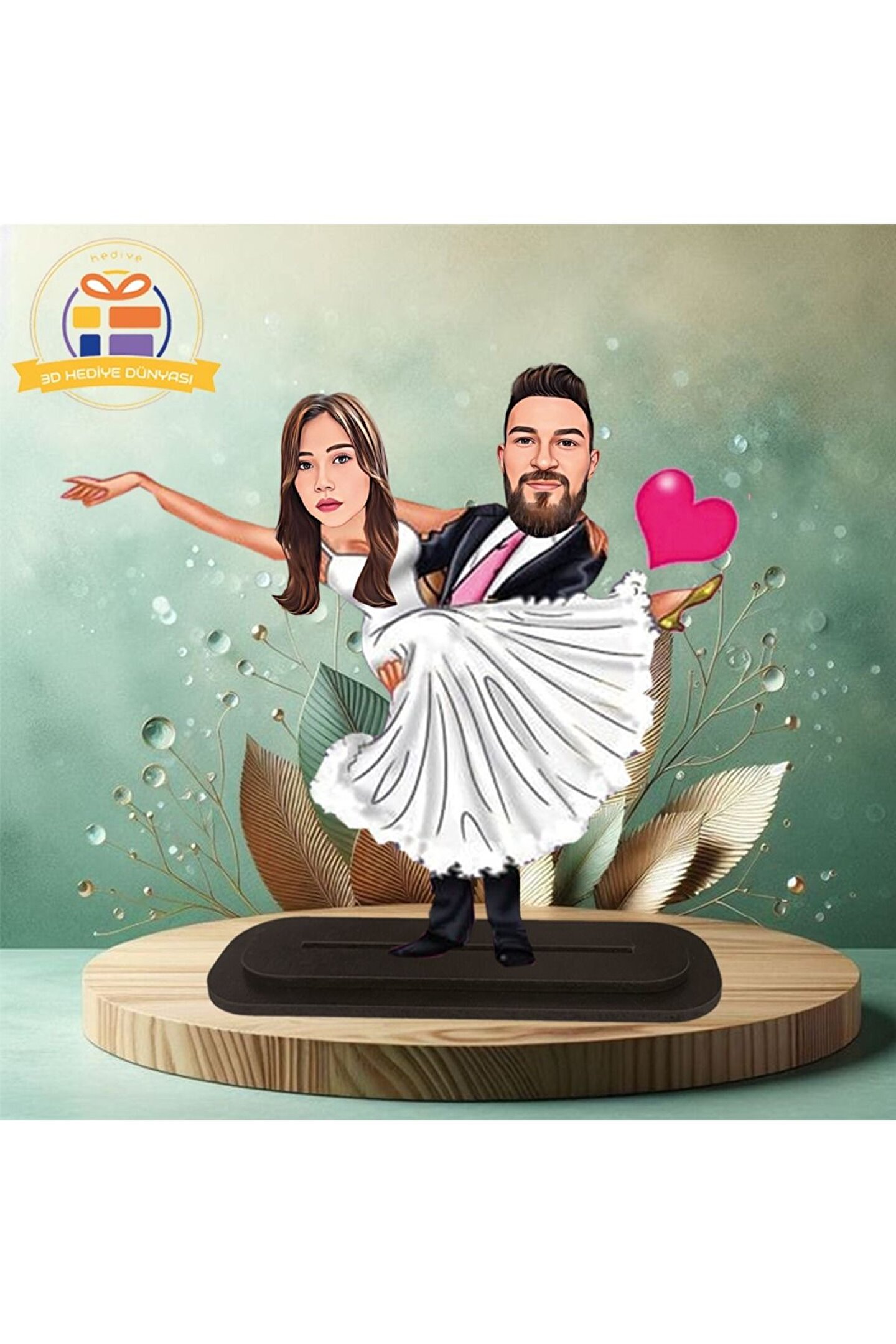 Gelin damat kucakta karikatürlü biblo hediye 3d masa üstü biblo hediyesi