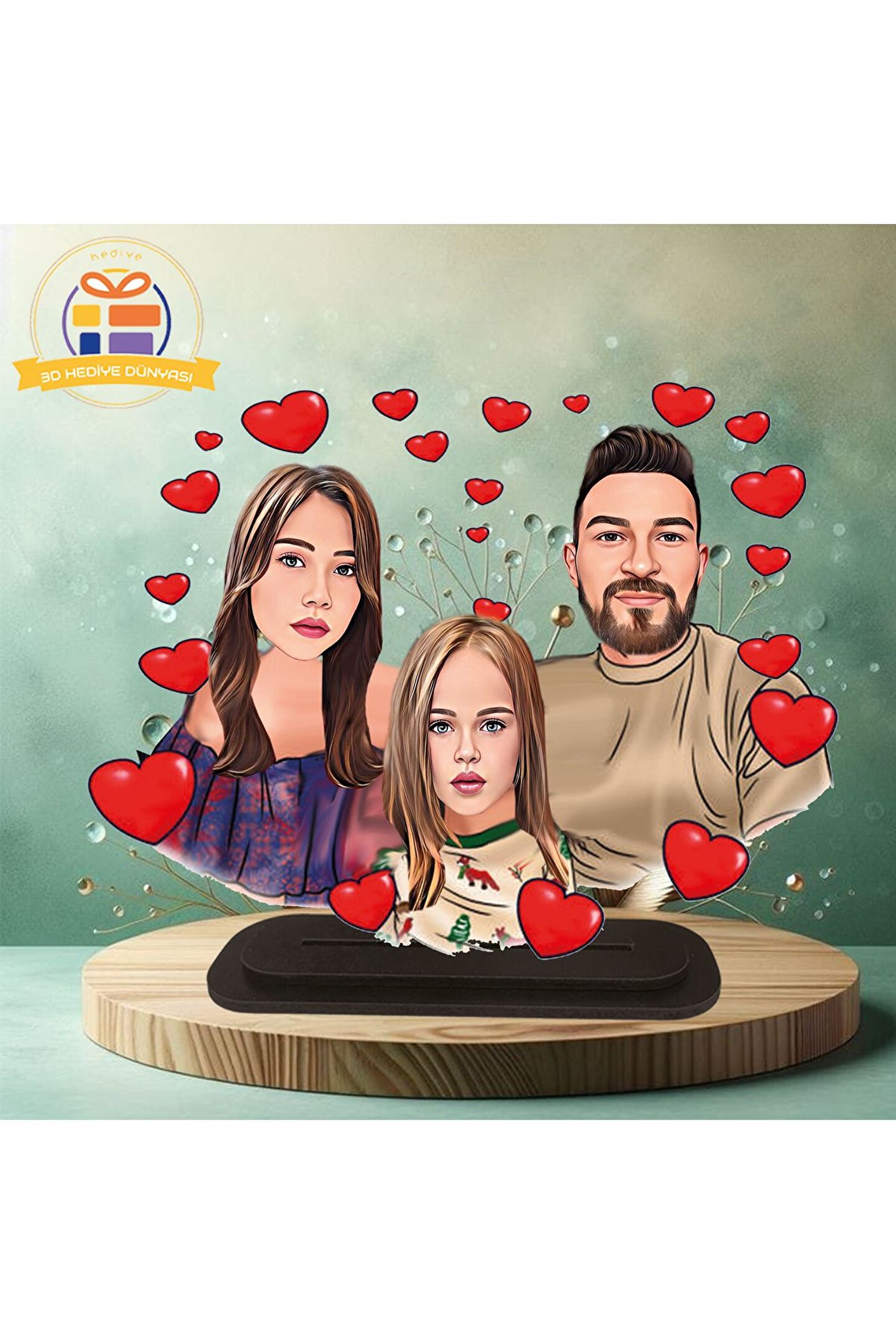 Kalpli aile karikatürü kalpli sevgilime hediye karikatürü biblo hediye 3d masa üstü biblo hediyesi