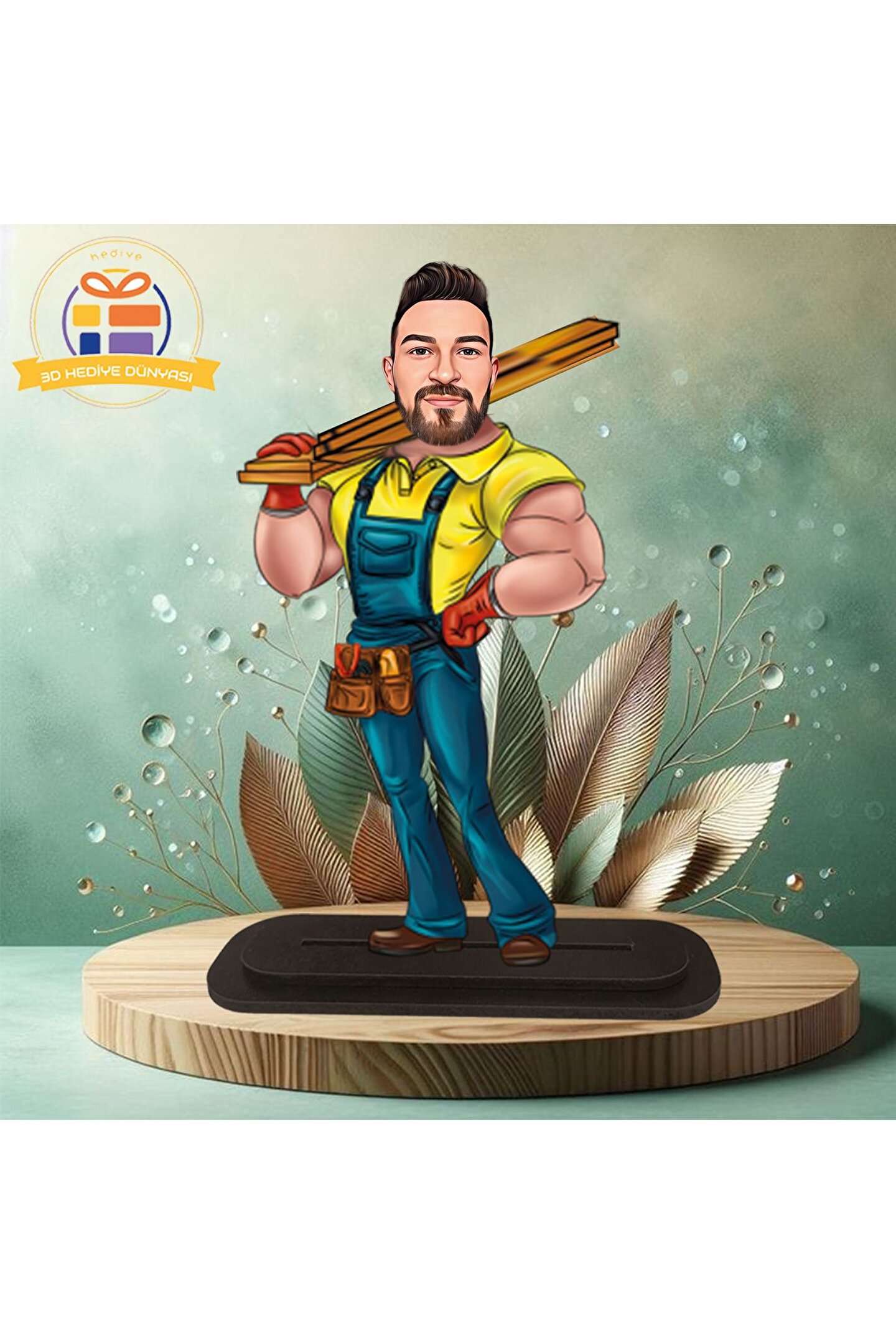 Kereste ustası karikatür marangoz ustası karikatürü biblo hediye 3d masa üstü biblo hediyesi