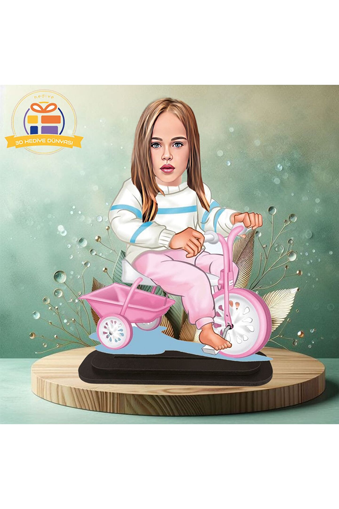 Kız çocuğu pembe bisikletli karikatürü biblo hediye 3d masa üstü biblo hediyesi