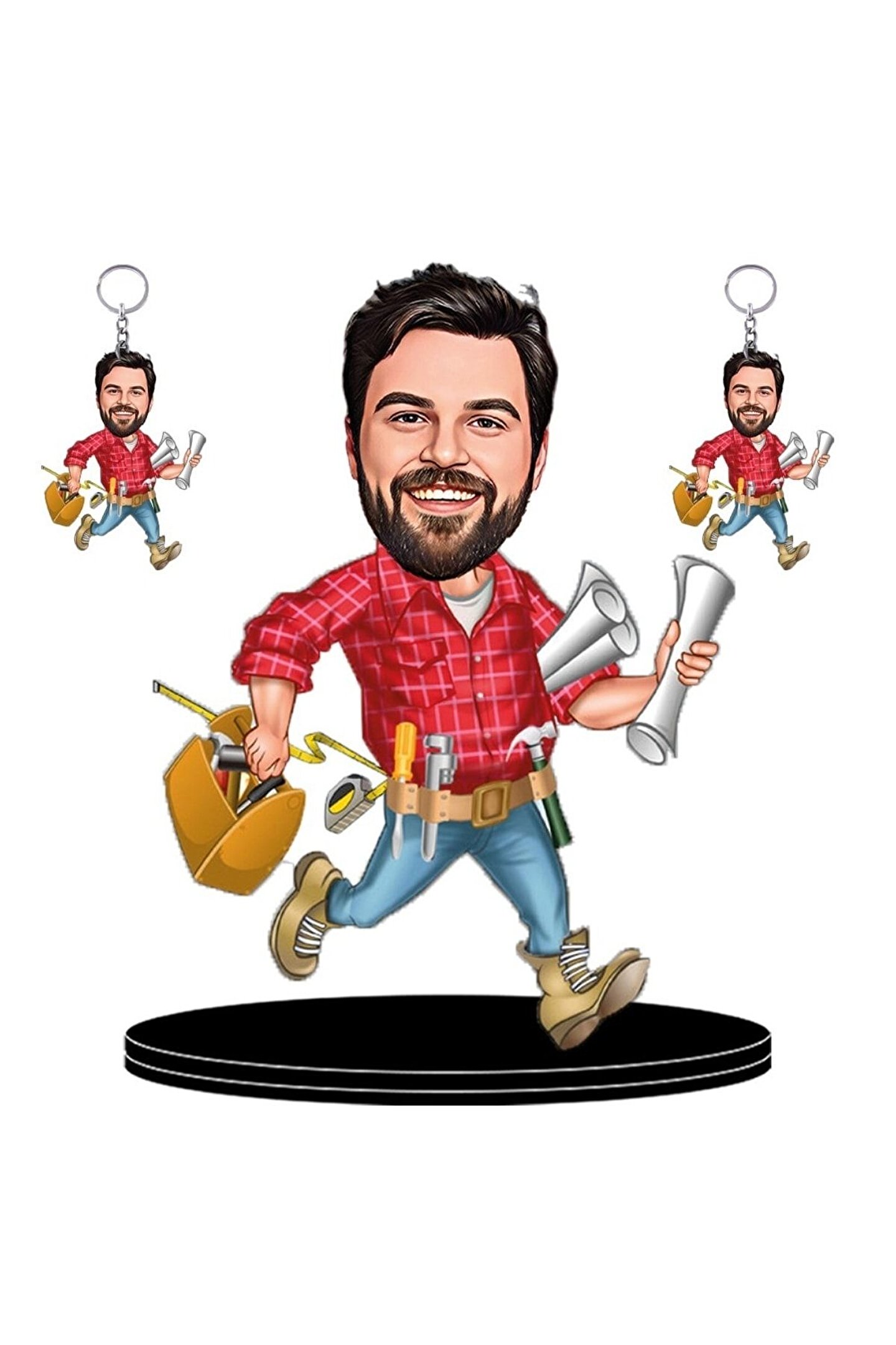 Mimar Arkadaşıma Hediye Karikatür Biblo Hediyesi 2 Adet Anahtarlık Hediye
