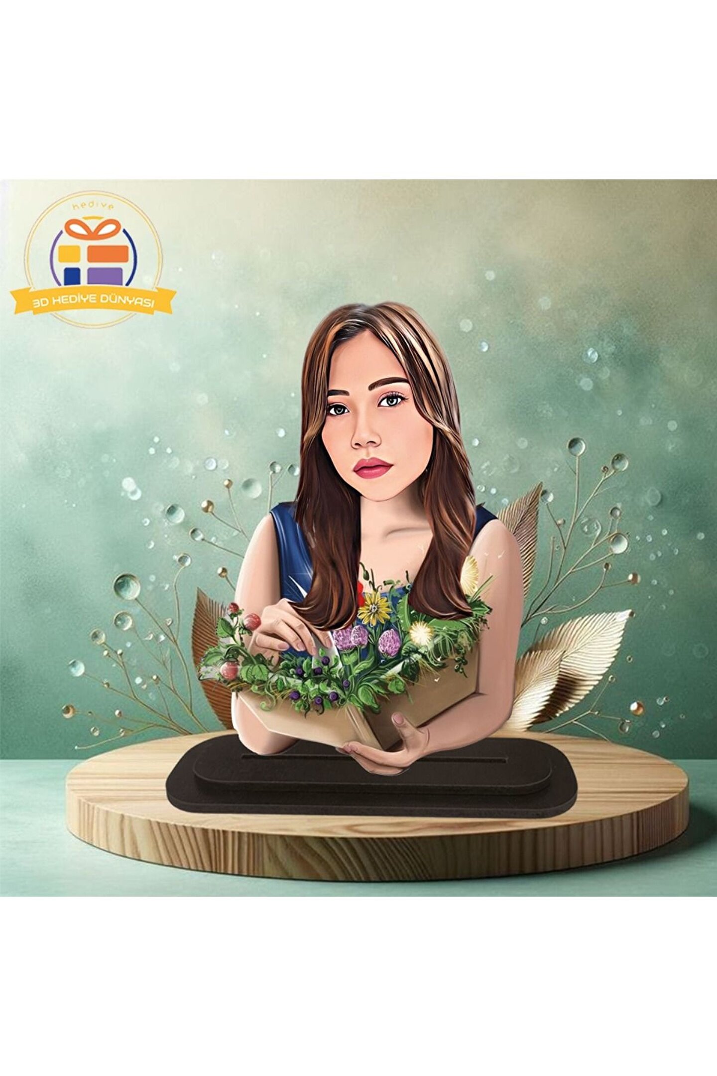 Öğretmenime çiçekli karikatürlü biblo hediye 3d masa üstü biblo hediyesi