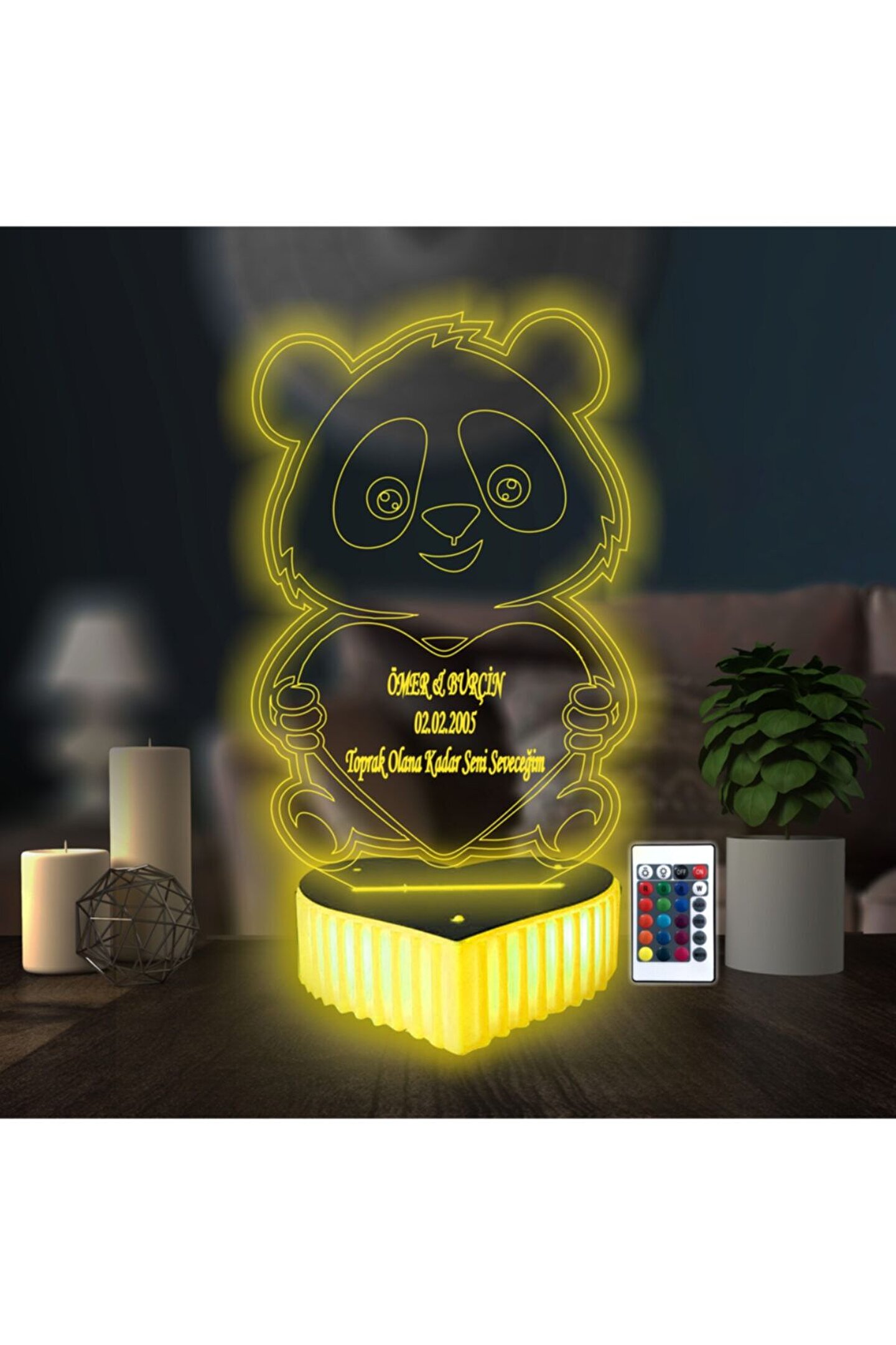 Panda Resimli Sevgililer Günü Hediyesi 16 Renkli Kumandalı
