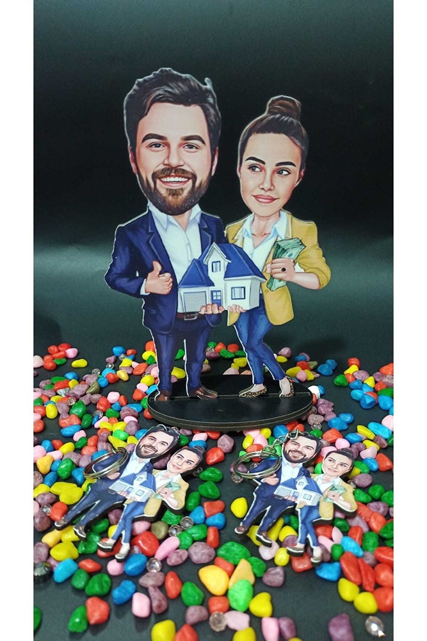 Sevgilime Hediye Karikatür Biblo Hediyesi 2 Adet Anahtarlık Hediye