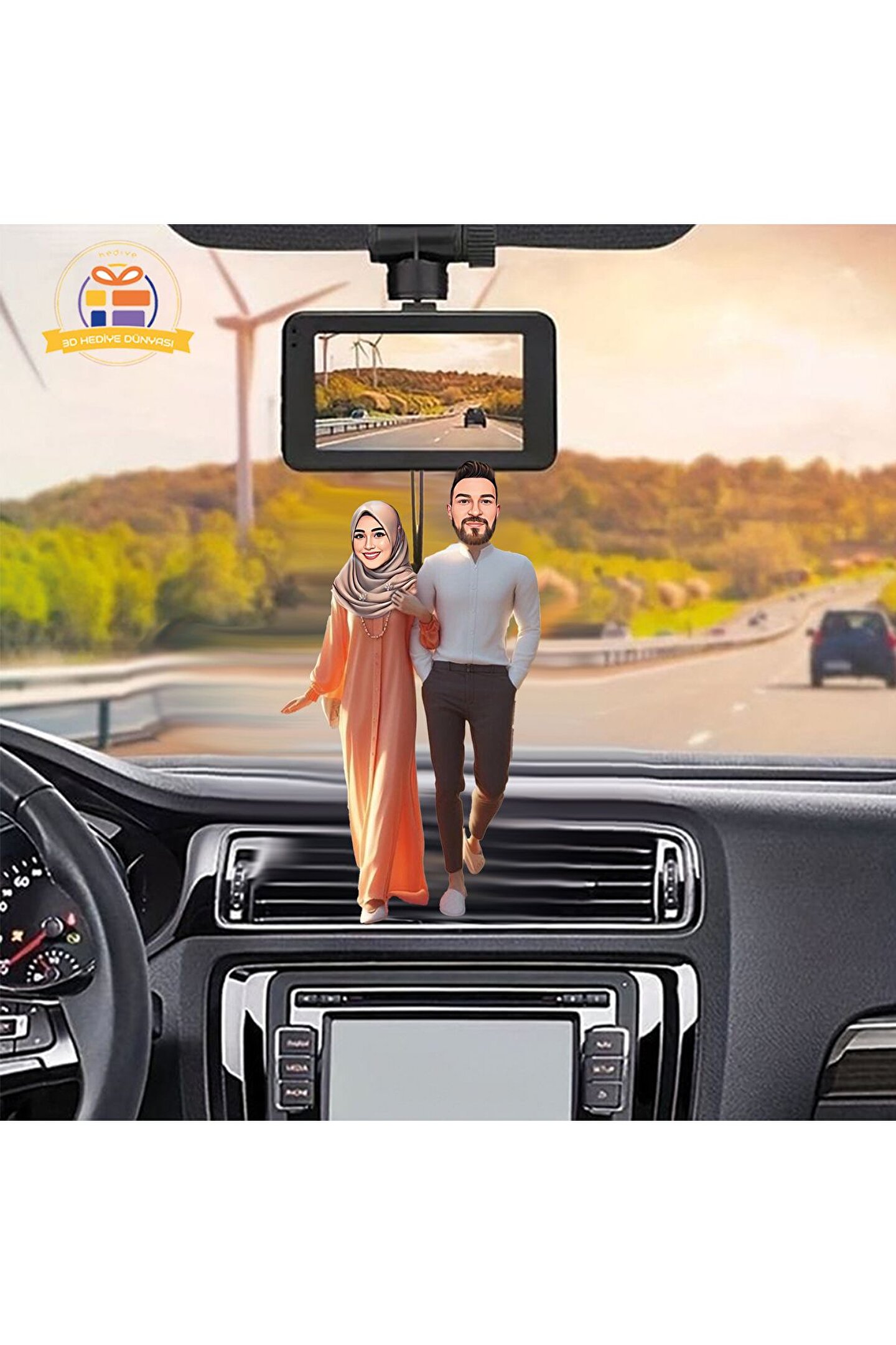 Tesettürlü ile eş karikatürü Araba Dikiz ayna süsü