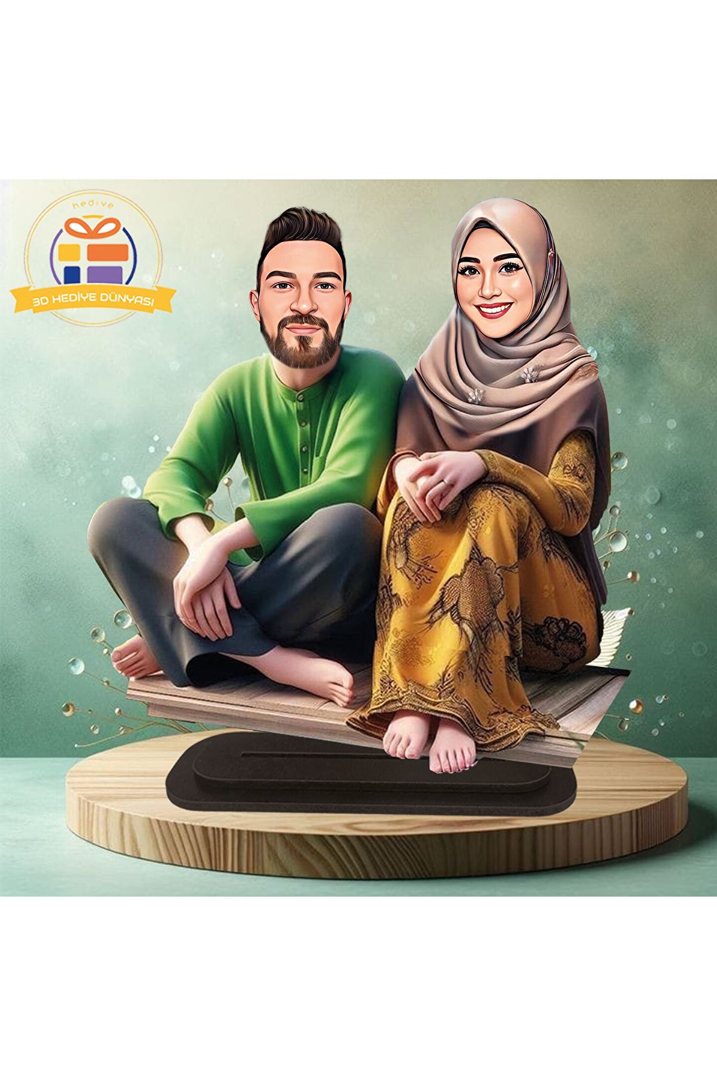 Tesettürlü karikatür Tesettürlü karı koca karikatürü biblo hediye 3d masa üstü biblo hediyesi
