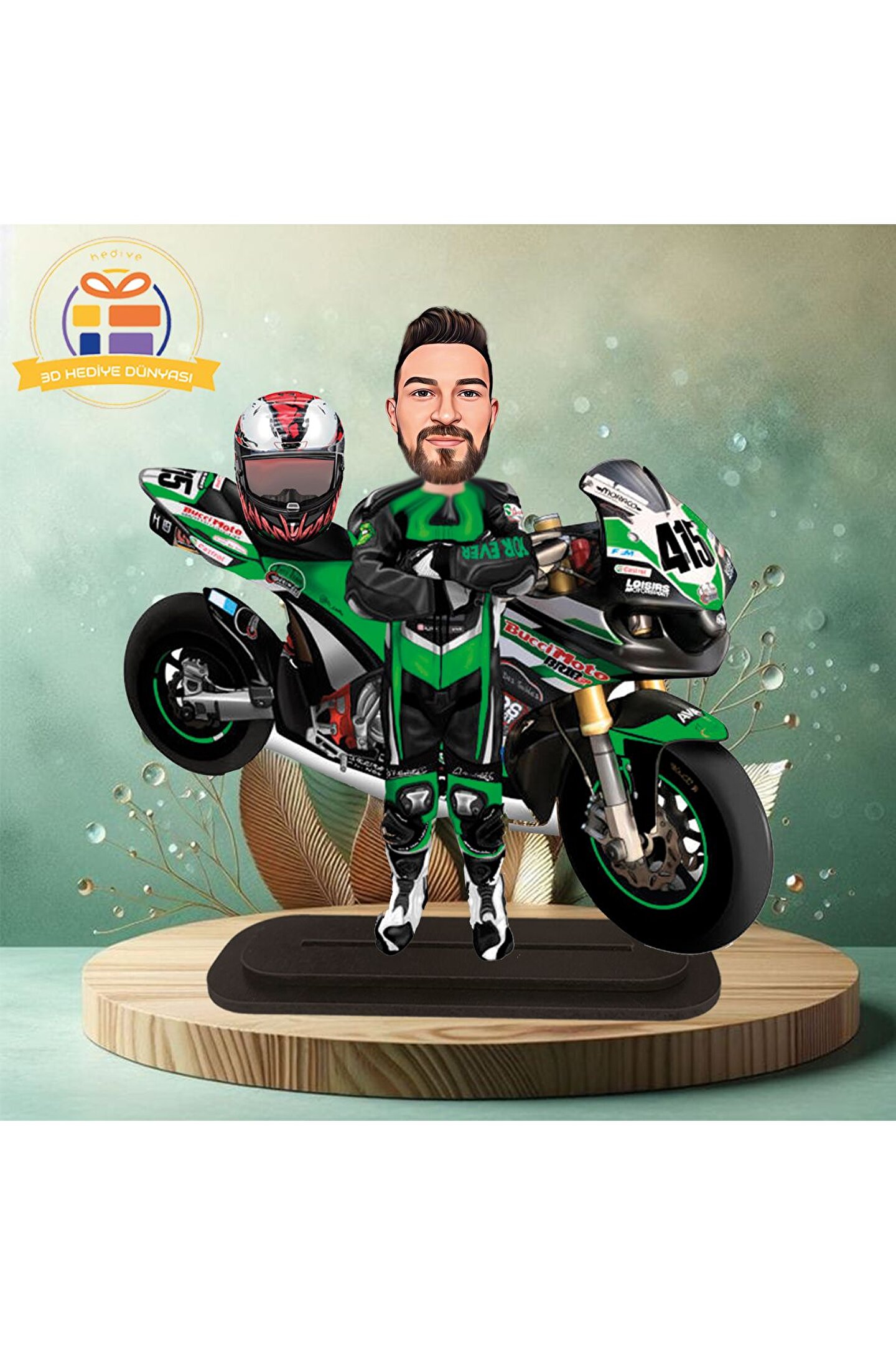 Yeşil Motorsiklet Yarış Motoru Karikatürü Biblo Hediye 3d Masa Üstü Biblo Hediyesi
