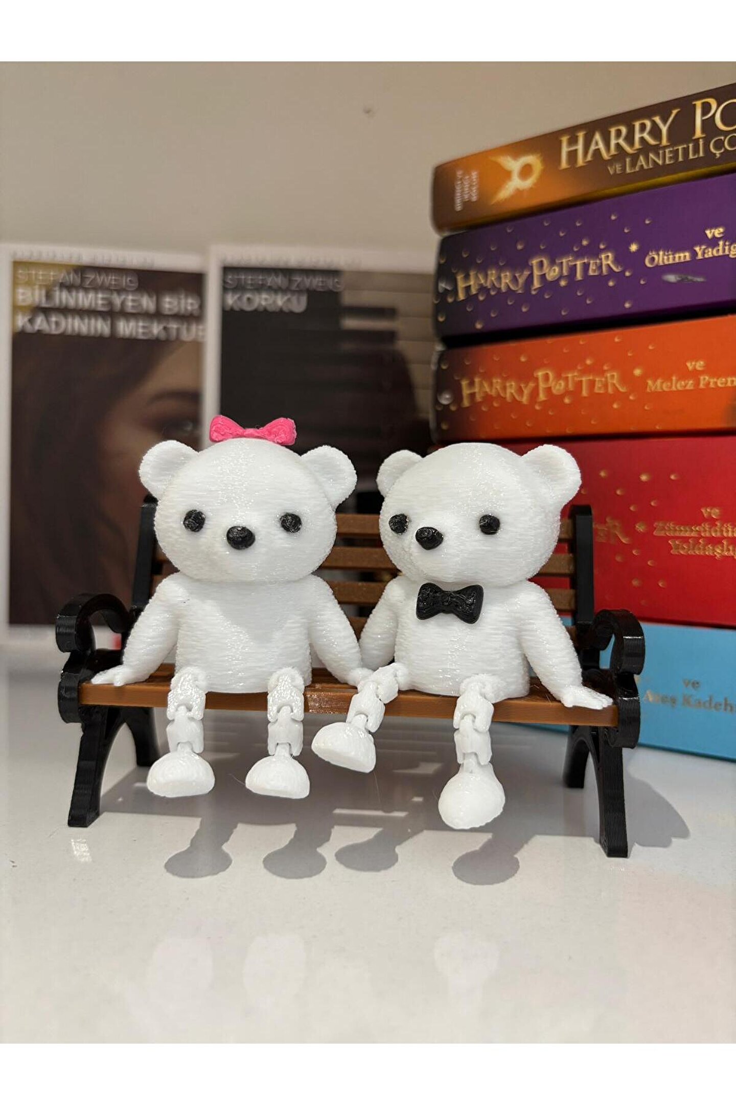 - Modern tasarımıyla dikkat çeken bu dekoratif biblo, bankta oturan ikili sevimli ayıcık figürleriyle evinizin veya ofisinizin atmosferini zenginleştirir.; - Üç parçadan oluşan set, hem şıklığı hem de fonksiyonelliği bir arada sunarak mekanınıza sıcaklık katar.; - Dayanıklı plastik materyali sayesinde uzun ömürlü kullanım vaat ederken, kolay temizlenebilir yapısı ile pratiklik sağlar.; - Hem dekoratif hem de kişisel hediye olarak tercih edilebilir.
