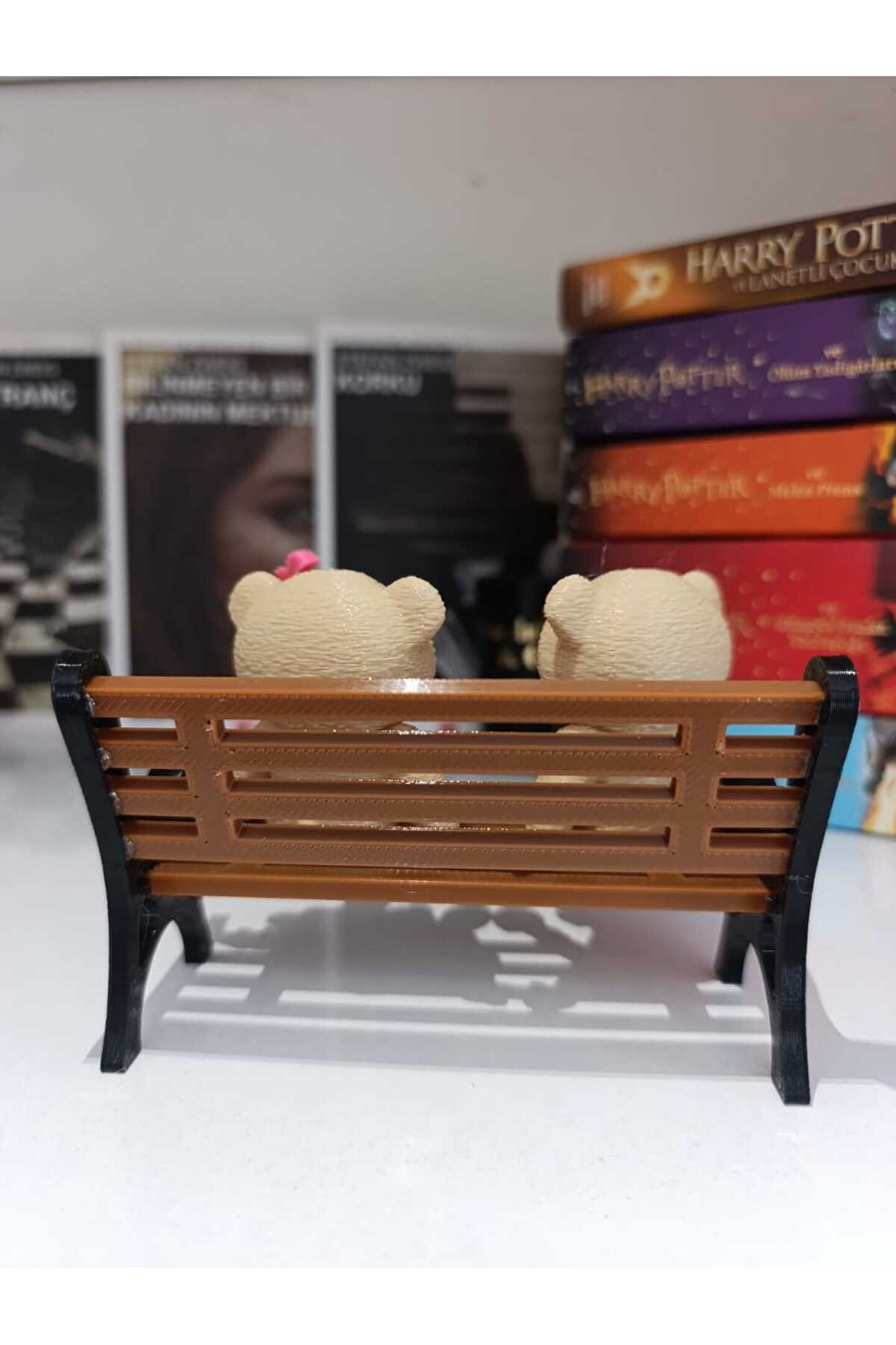 3DreaMaker Bankta Oturan İkili Sevimli Ayıcık Figürü Dekoratif Biblo