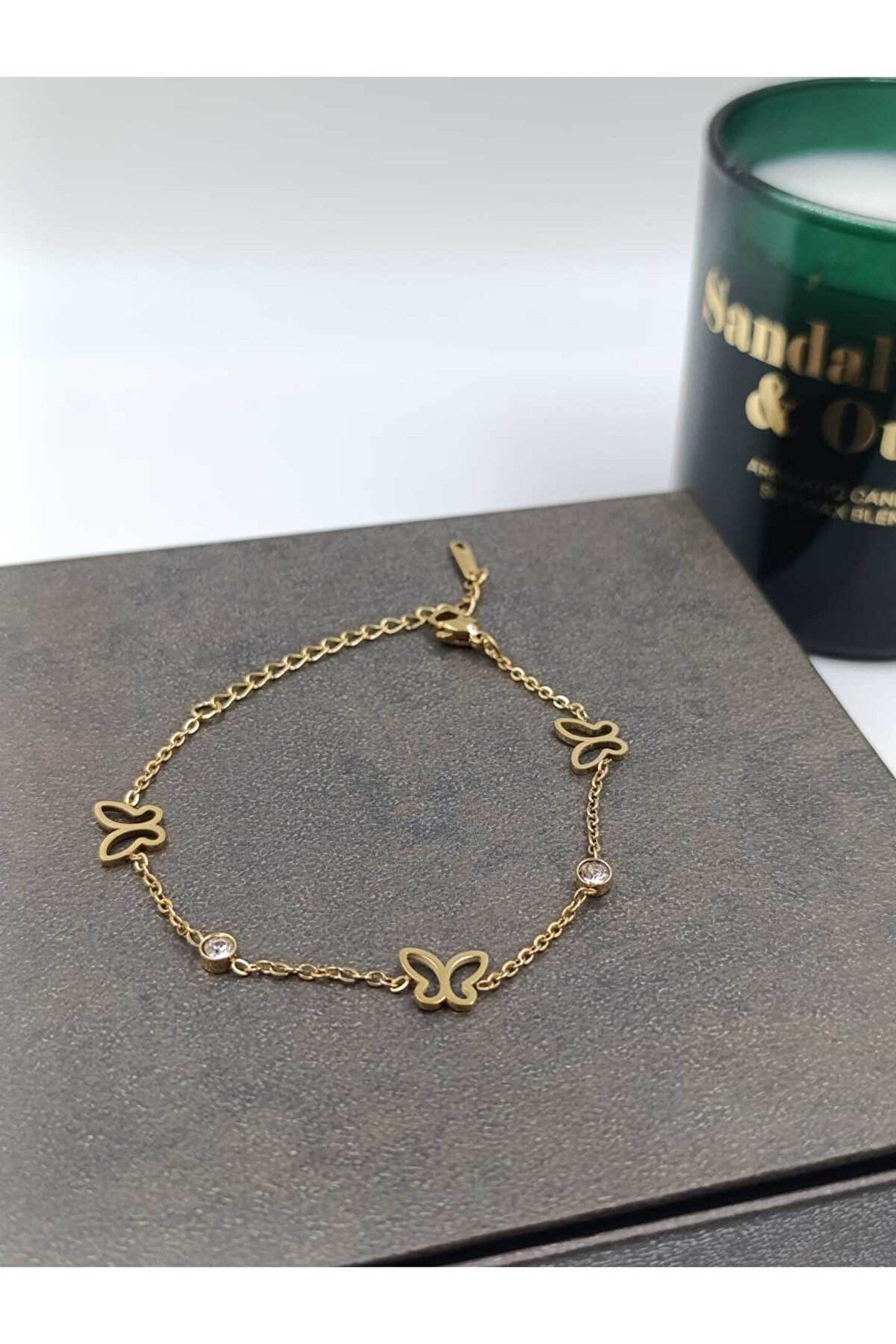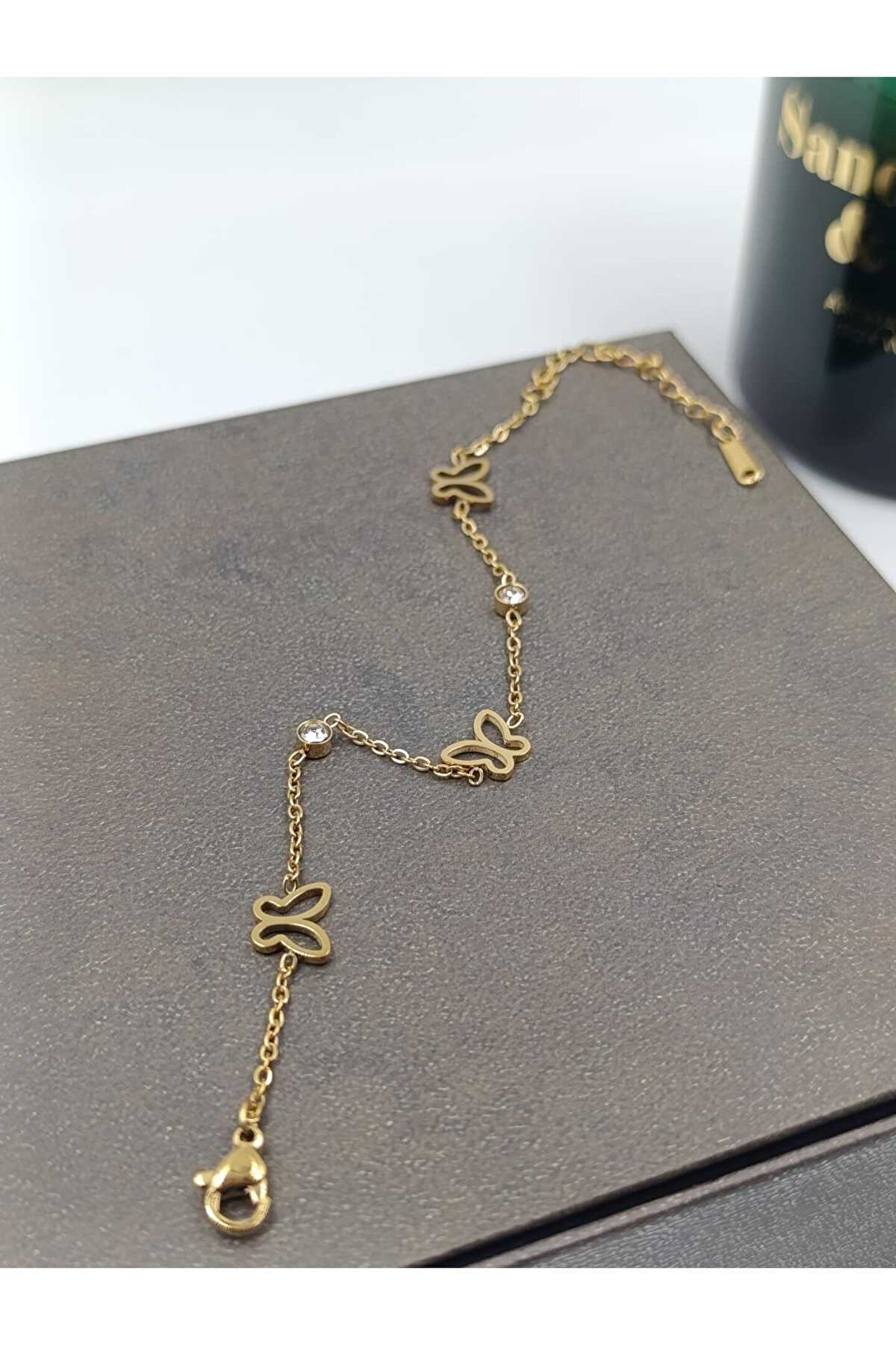 - Zarif kelebek detaylarıyla süslenmiş, şıklığı ve feminenliği bir arada sunan çelik bileklik.; - Zirkon taş kullanımı sayesinde göz alıcı bir parlaklık ve estetik görünüm kazandırılmıştır.; - Türkiye'de üretilmiş olup yerli üretim kalitesini yansıtmaktadır.; - Dayanıklı çelik materyali ile uzun süreli kullanım imkanı sağlar; kararmaya karşı dirençlidir.
