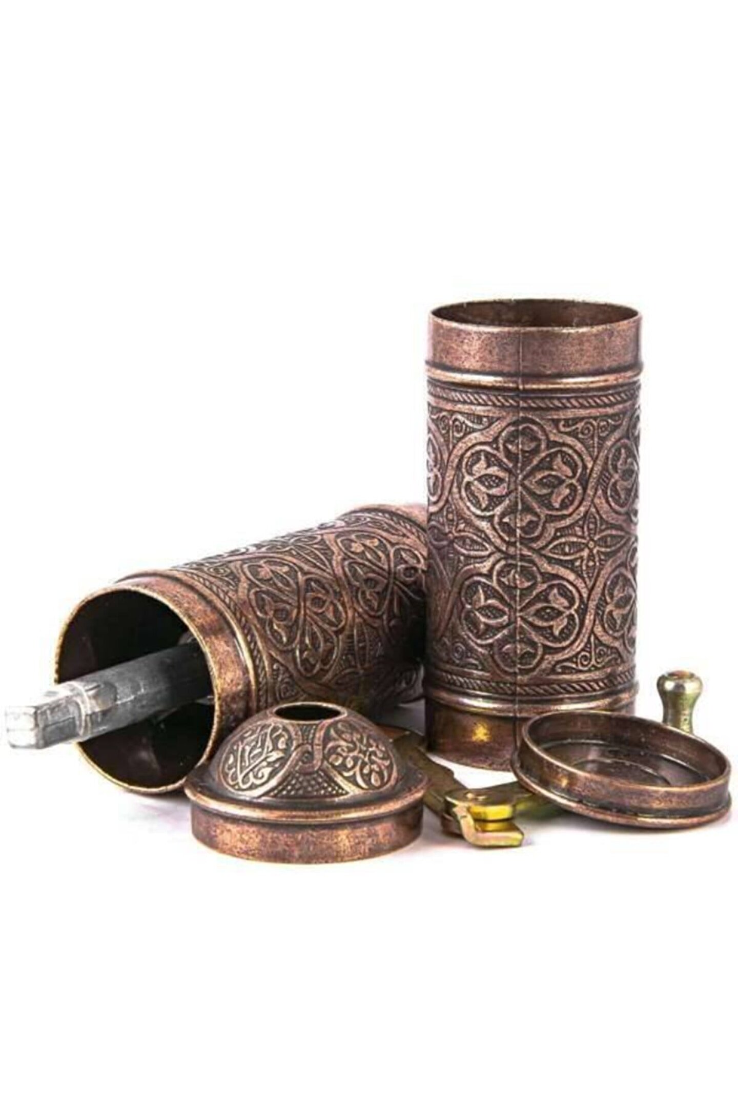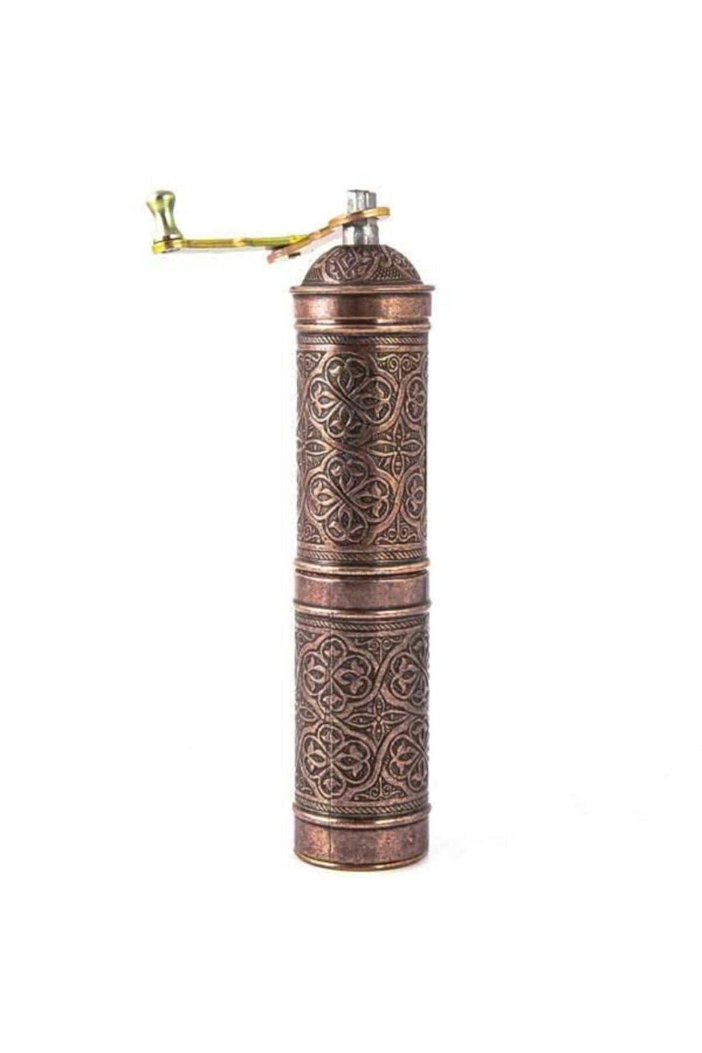 KAHVE ÖĞÜTÜCÜ KAHVE DEĞİRMENİ EL DEĞİRMENİ 20-22 cm uzunluğundadır...4-4.5 cm genişliğindedir...Bu ürünle bir çok seyi öğütebileceksiniz.. ; çekme vidası, öğütme haznesi, sap ve kapak parçalarından oluşmaktadır. ; Değirmeni ayırdığınızda çekme vidası ve öğütme haznesini görebilirsiniz. ; Geleneksel bir yöntemin vazgeçilmez bir kıymeti olan değirmeni, çekirdek kahvenin öğütülmüş forma geçmesi esnasındaki tüm keyfi size yaşatacağından emin olabilirsiniz. ; Bakır üretimi olmasından dolayı son derece dayanıklı olup uzun zaman keyifle ve aynı istikrar ile kullanabilirsiniz.;