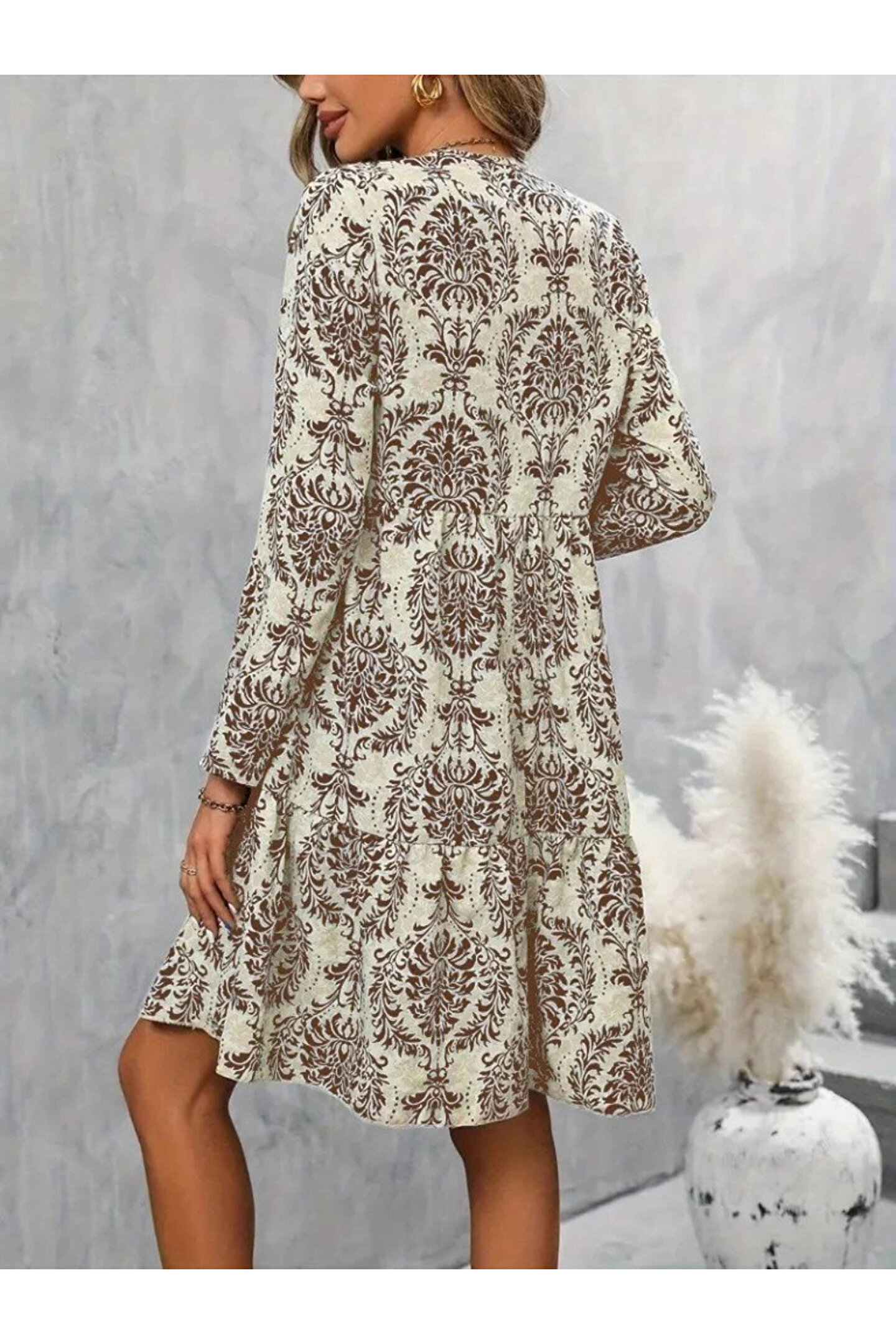 Kadın Uzun Kollu V Yakalı Fırfırlı Mini Süprem Elbise