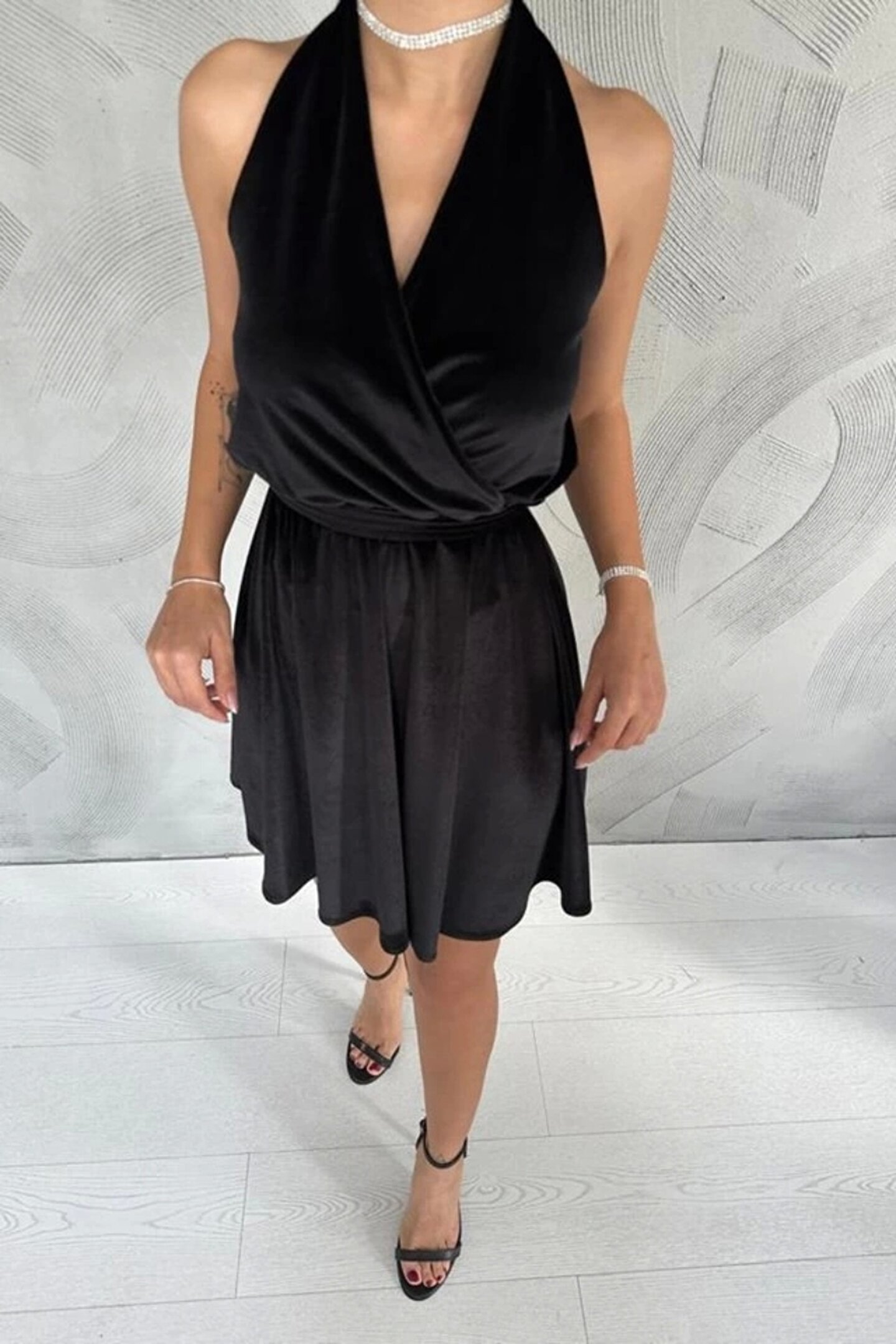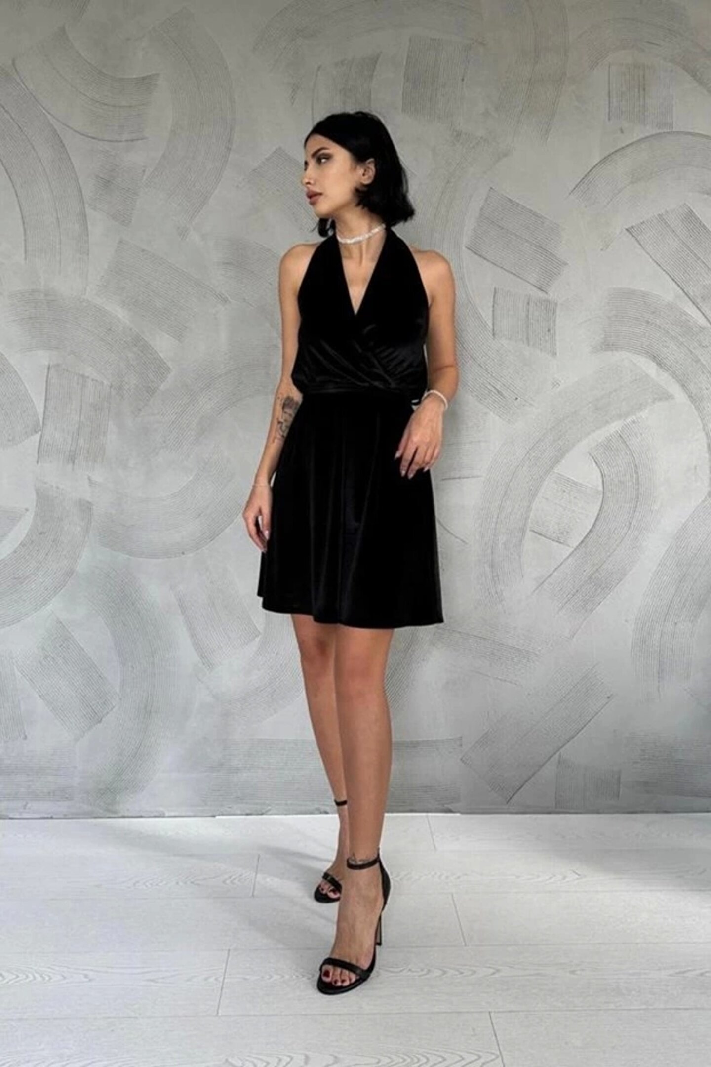 Adora Moda Siyah Boyundan Geçmeli Elbise