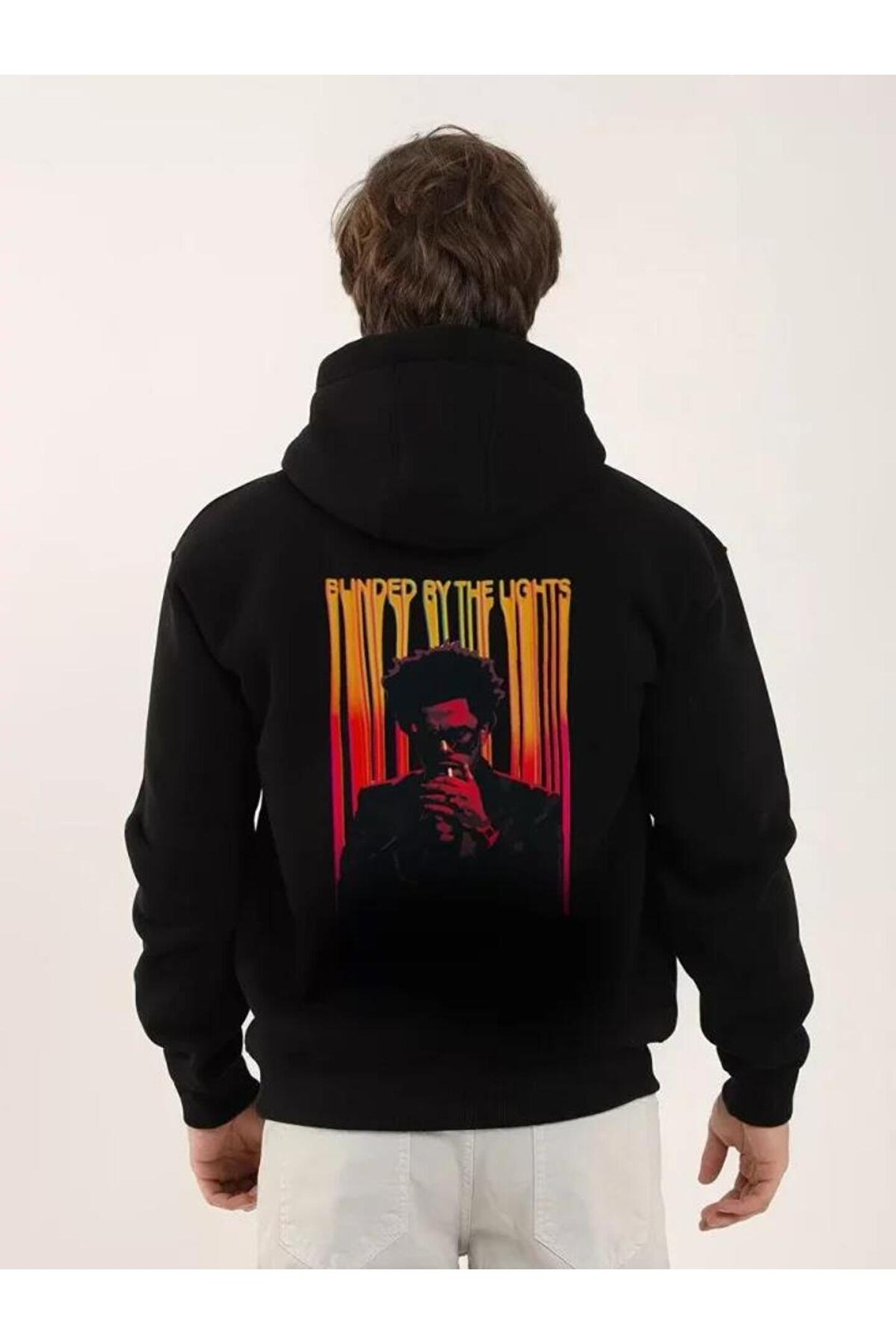 Adora Moda Unisex Baskılı Oversize Üç İplik Kapüşonlu Sweatshirt - Siyah