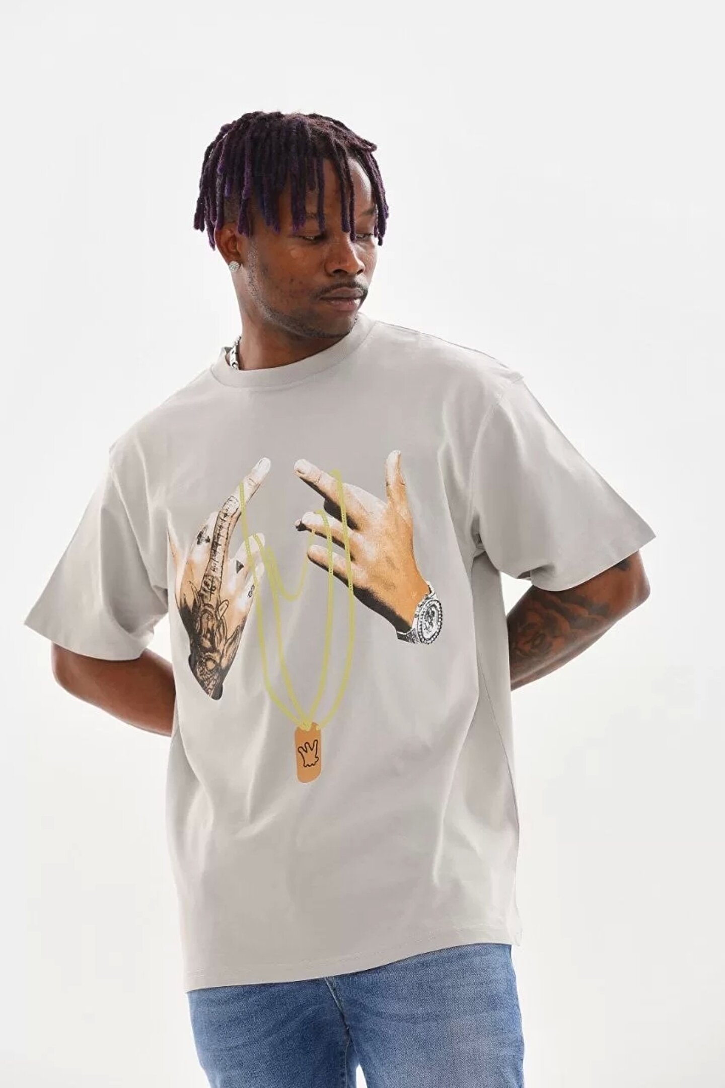 Unisex Baskılı Oversize T-Shirt - Gri