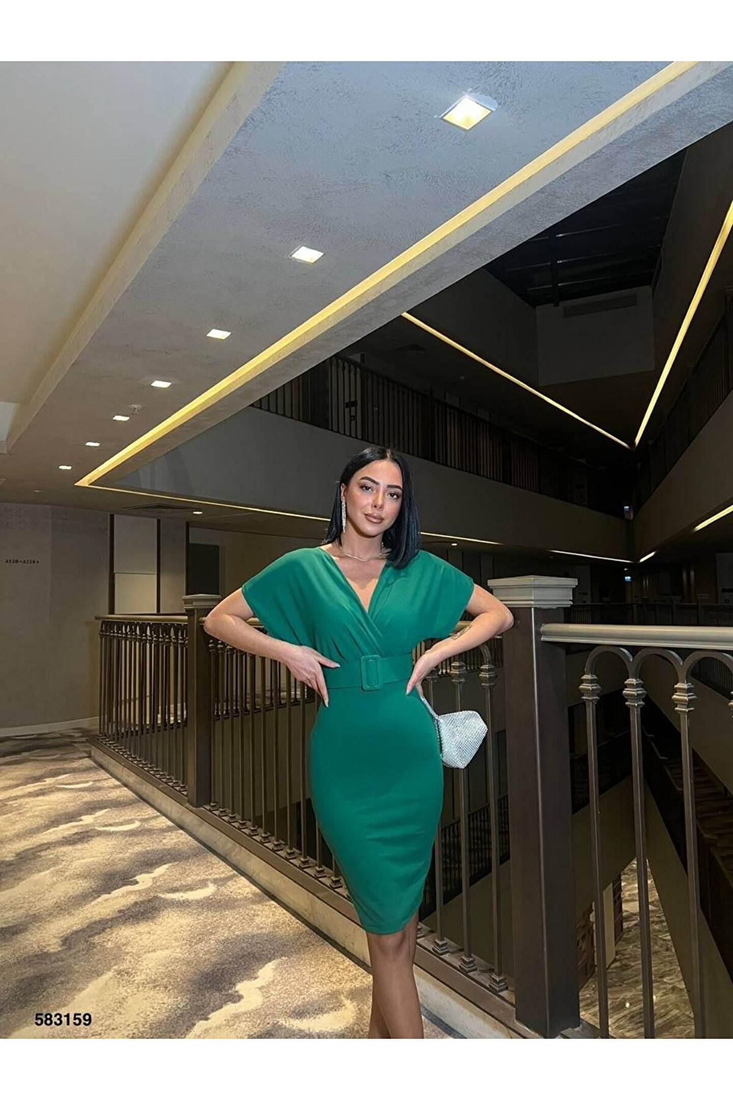 Kadın Dalgıç Krep V Yaka Ve Sırt Dekolte Detaylı Elbise