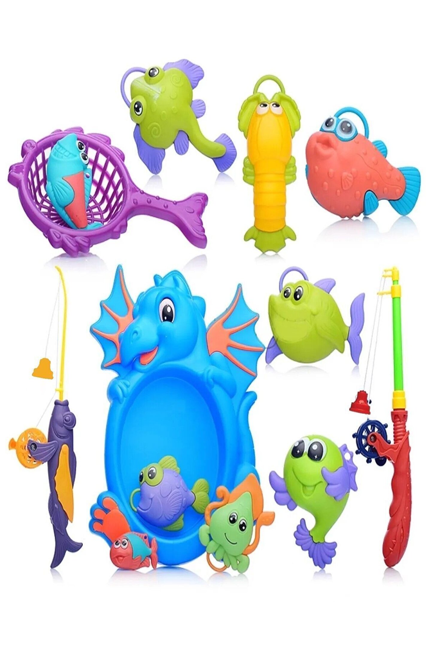 Balık Tutma Yakalama Oyunu 12 Parça Mıknatıslı Oltalı Deniz Canlıları Eğlenceli Eğitici Oyuncak