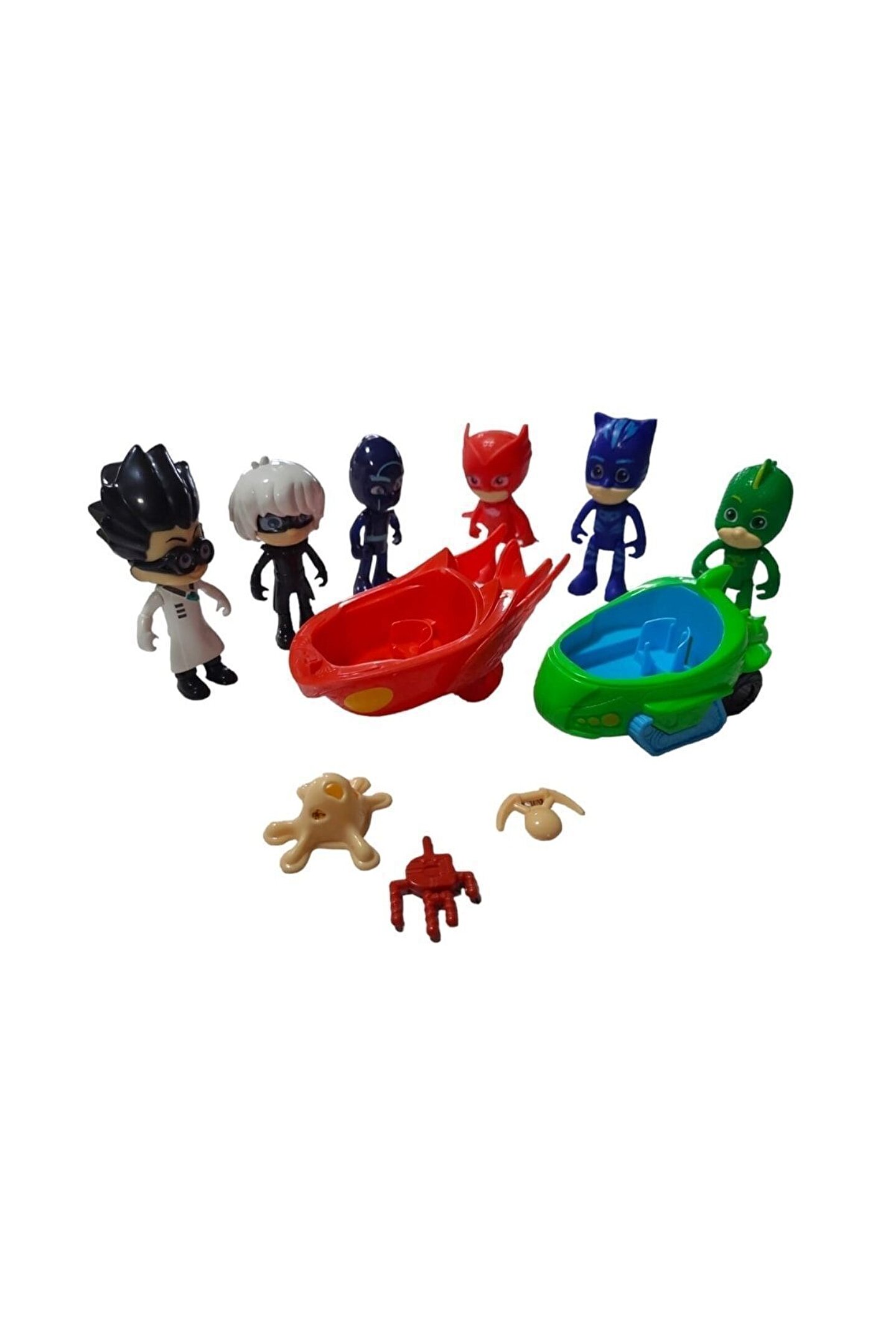 Pj Maskeliler Figür 6 Karakter 2 Arabalı 3 Silah Oyuncak Araç Seti 11 Parça