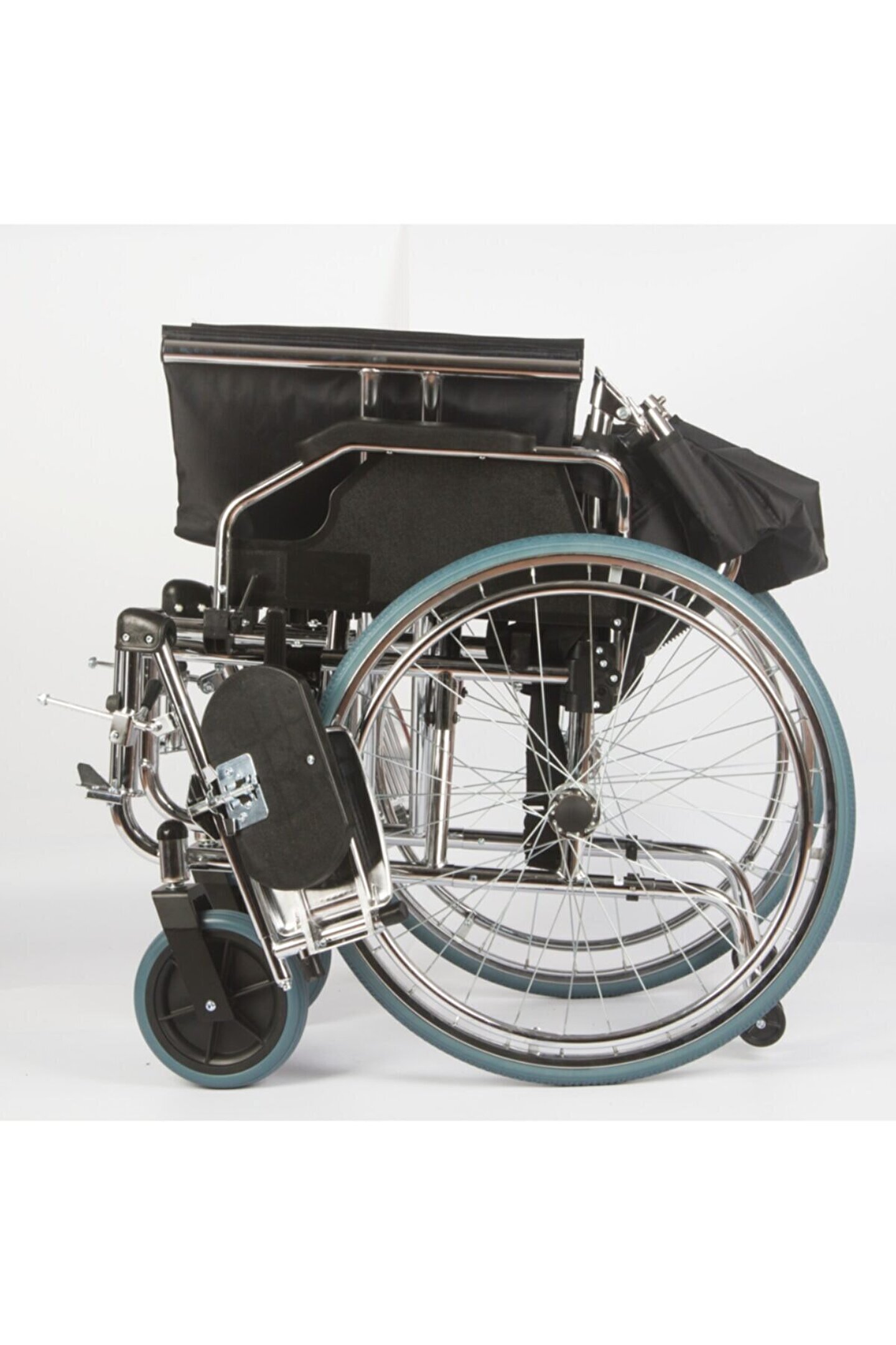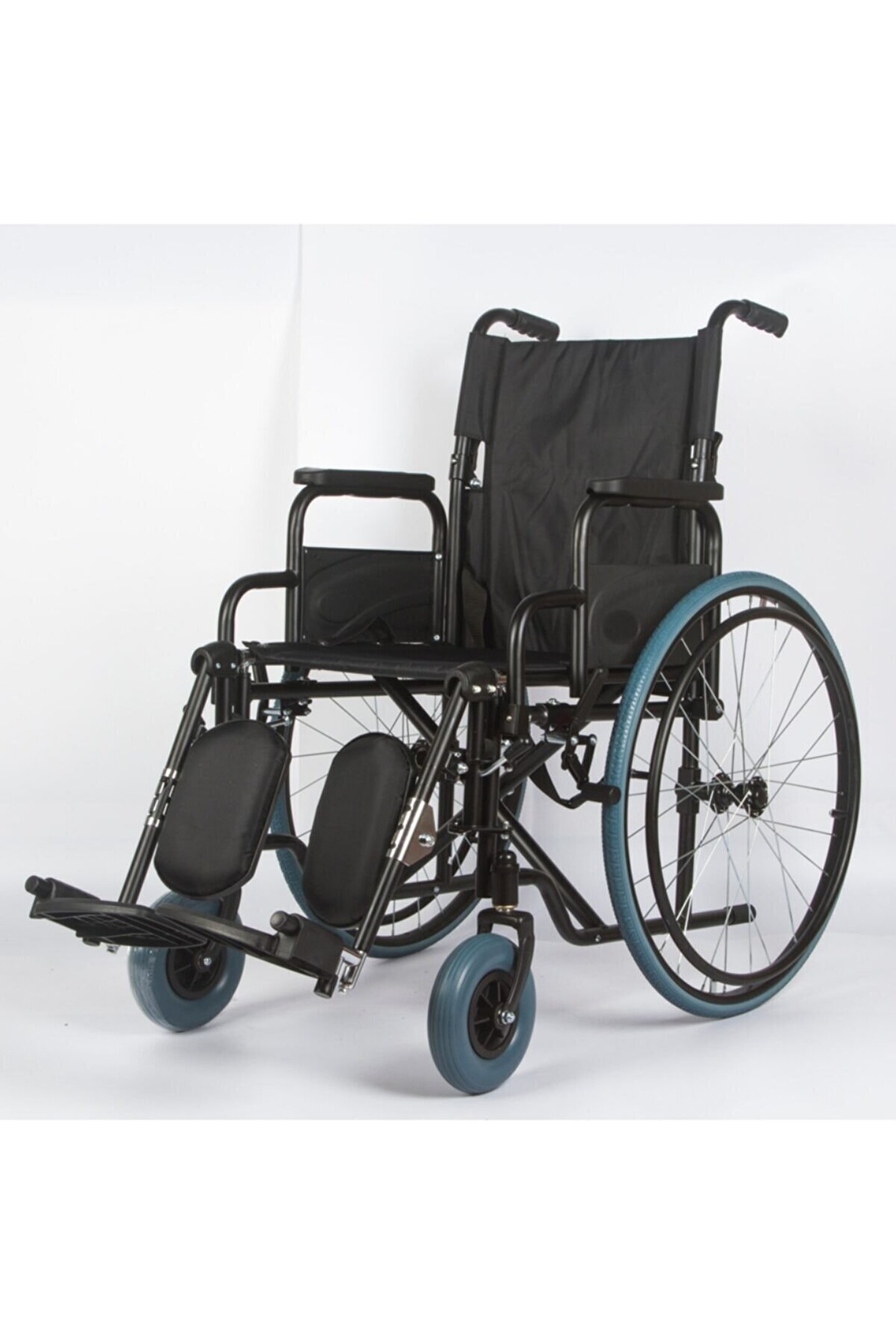 ÜRÜN ÖZELLİKLERİ · Tamamı çelik gövde ve çelik şaseden üretilmiştir. · Kolayca katlanabilir manüel tekerlekli sandalye · refakatçi kullanımına uygunluk · Çıkarılabilir kolçaklar · Ayarlanabilir baldır destekli, açısı ayarlanabilir, tamamıyla yukarı doğru kaldırılabilir ayak asansör sistemi · Kolayca temizlenebilir deri koltuk döşemesi · Geriye düşmeyi engelleyen sistem Oturma Eni: 41 cm Oturma Derinliği: 40 cm Sırt Yüksekliği: 40 cm Sandalye Eni: 60 cm Ağırlığı: 21 kg Dizaltı Uzunluğu: 50 cm Arka Teker Çapı : 59 cm Taşıma Kapasitesi: 120 kg