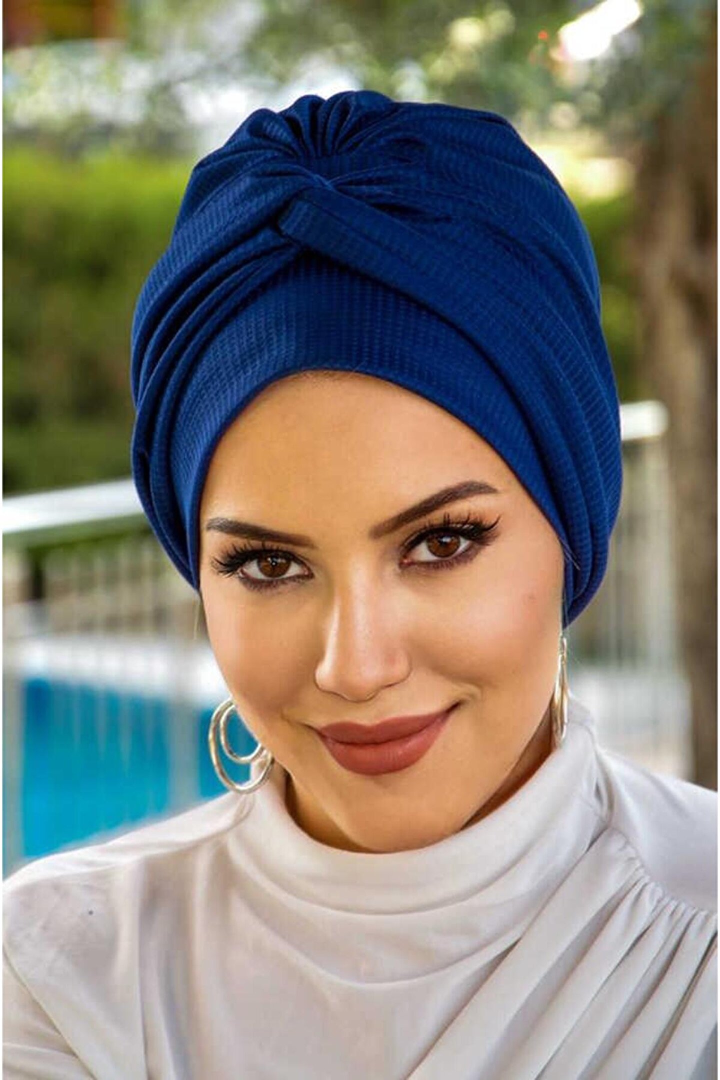 Aişe tesettür Açık Lacivert Burgu Detaylı Bone