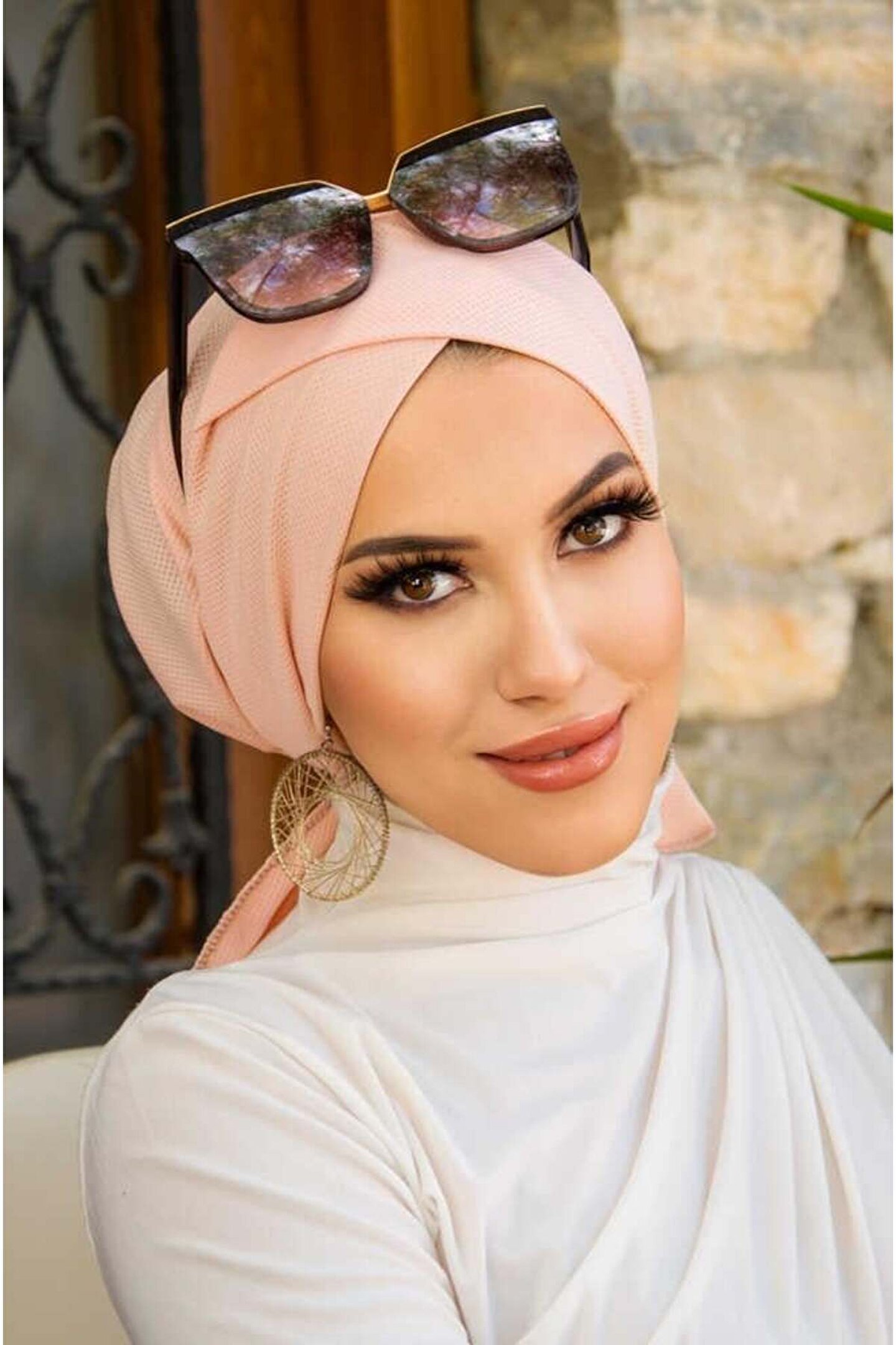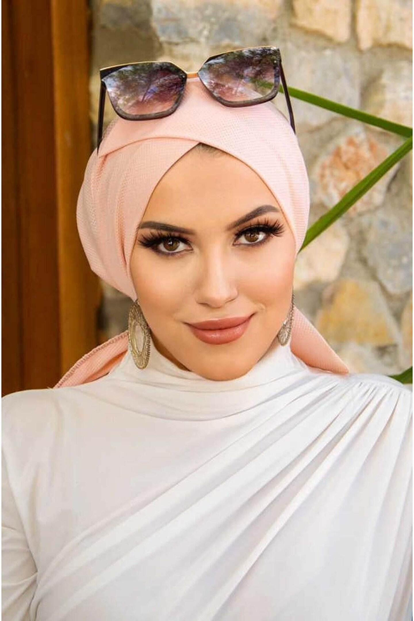 Aişe tesettür Açık Somon Çapraz Bantlı Bone