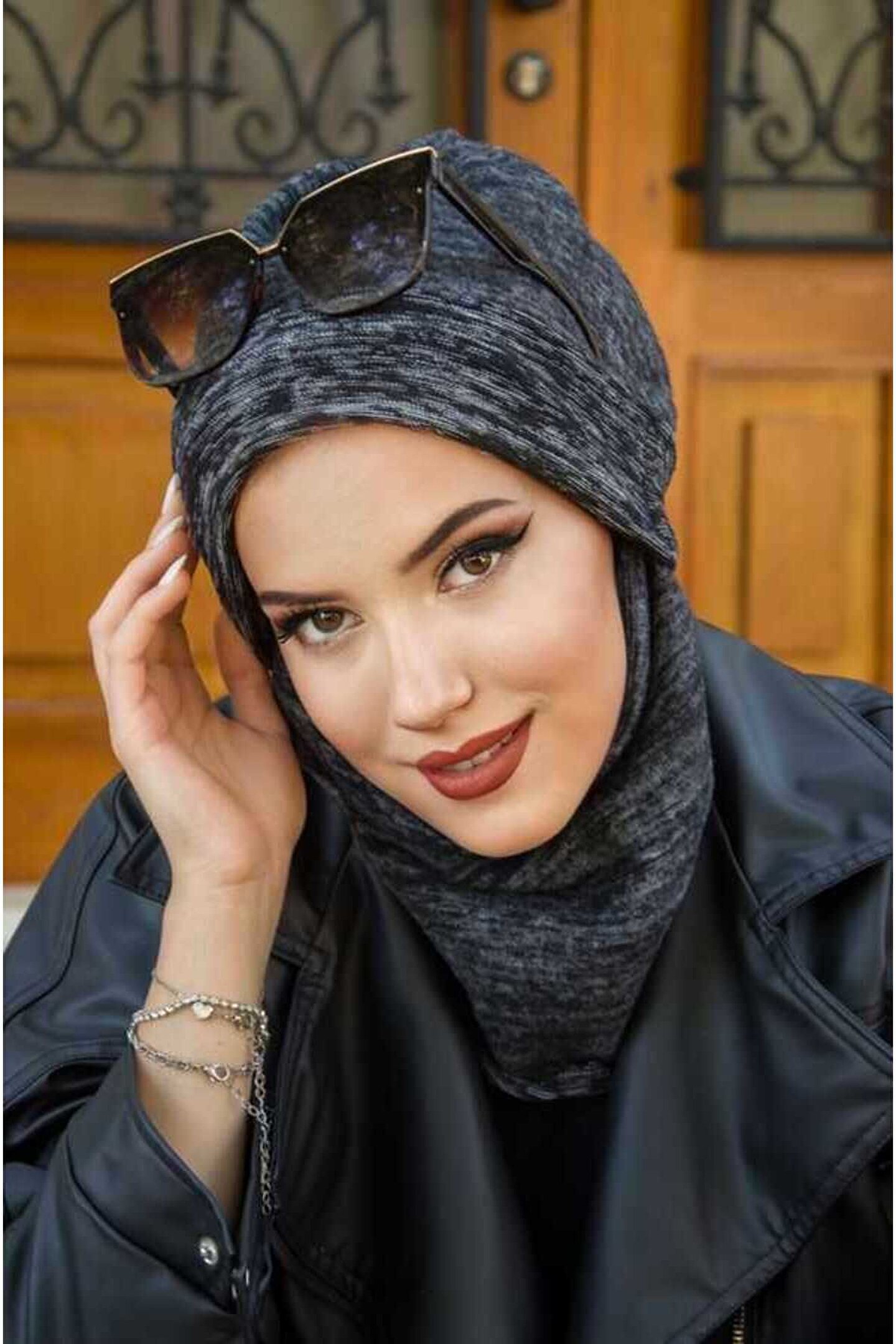 Gri Melanj İnce Örme Armalı Tesettür Bere