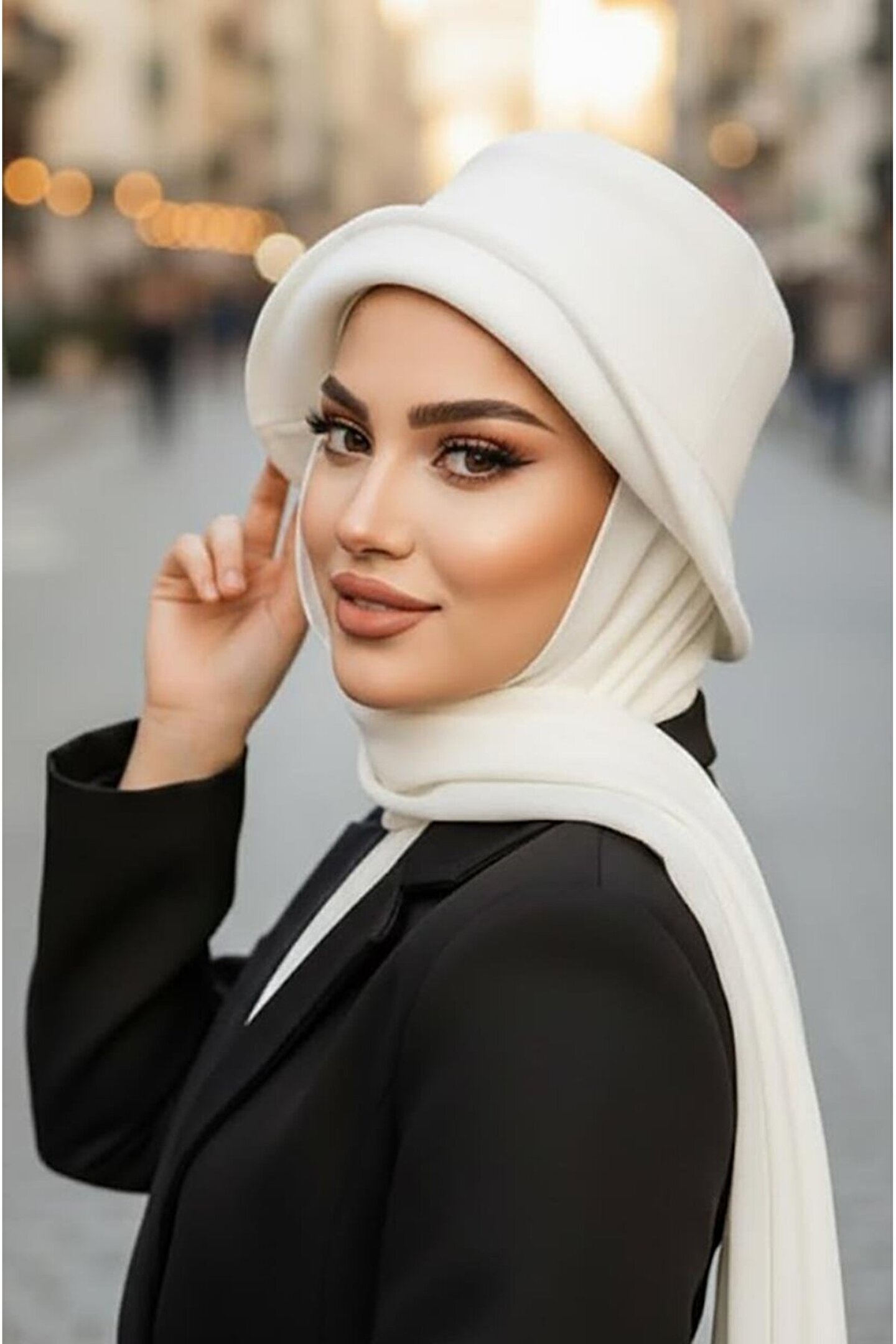 Aişe tesettür Beyaz Atkılı Vintage Şapka