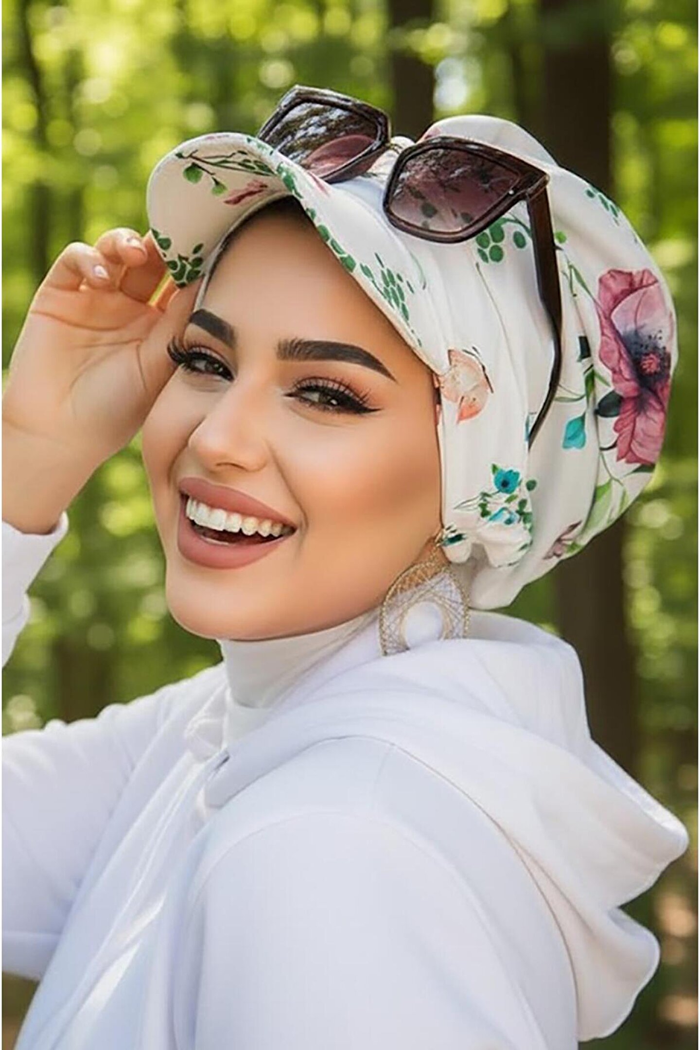 Aişe tesettür Beyaz Çiçek Desenli Şapka Bone