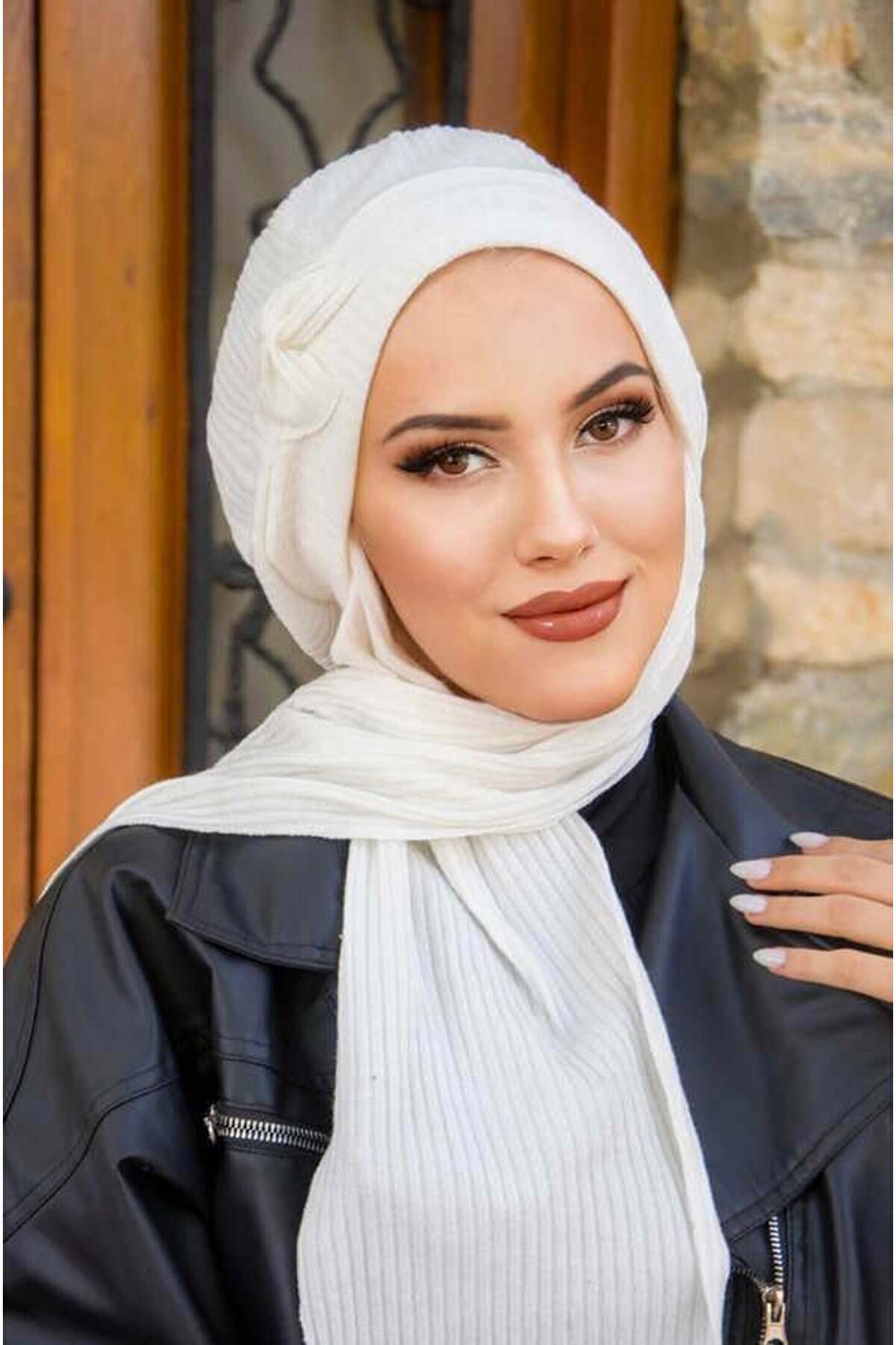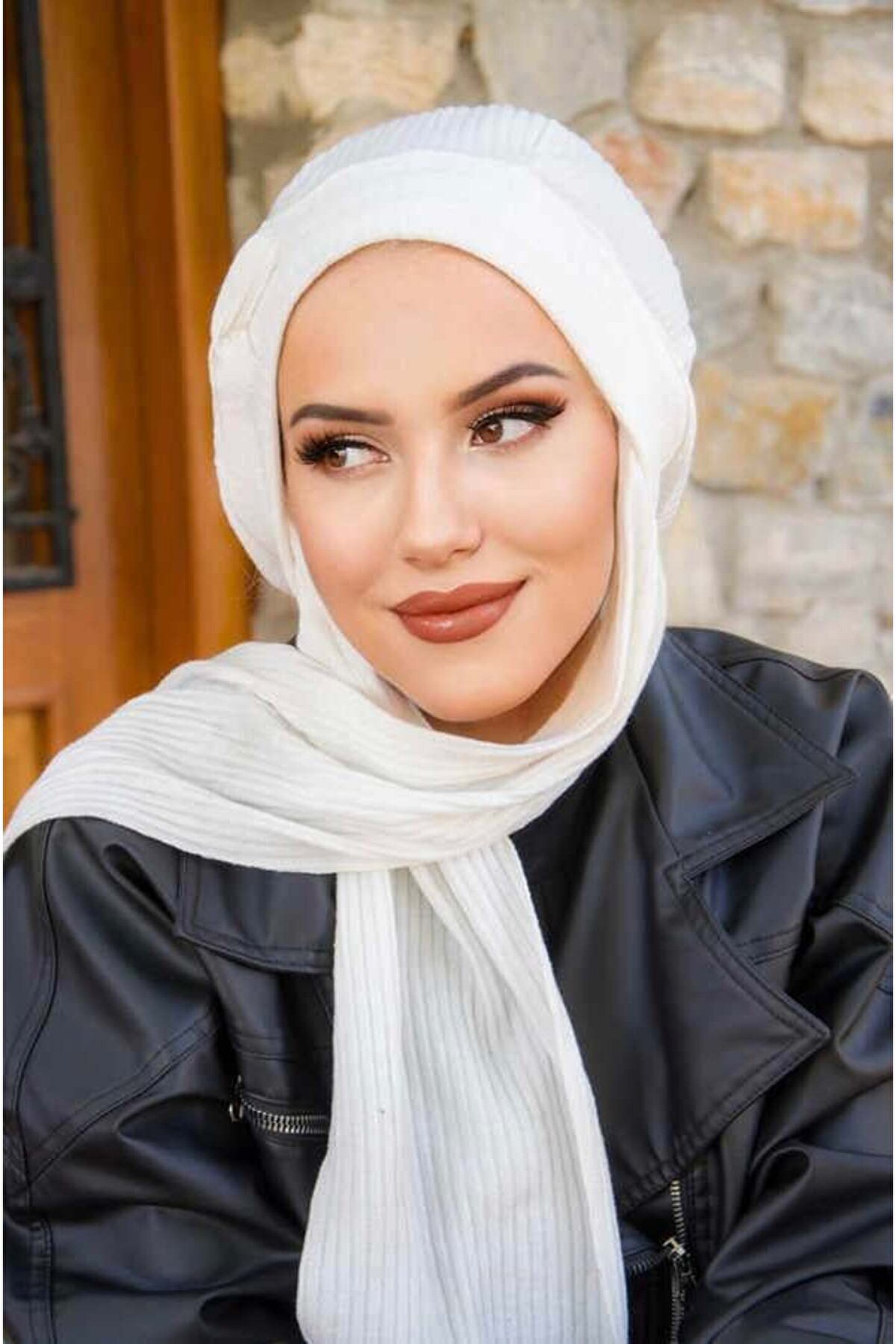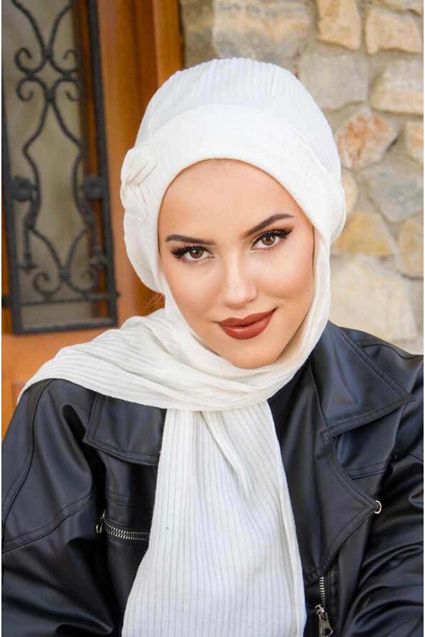 Aişe tesettür Beyaz Fitilli Fiyonklu Tesettür Bere
