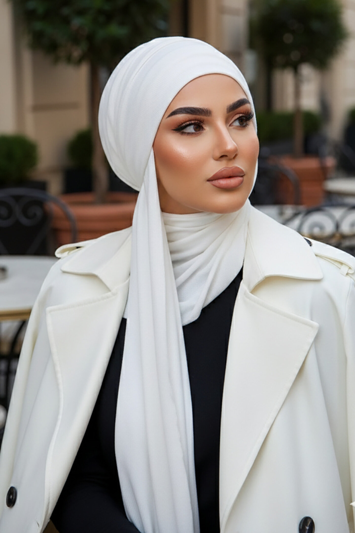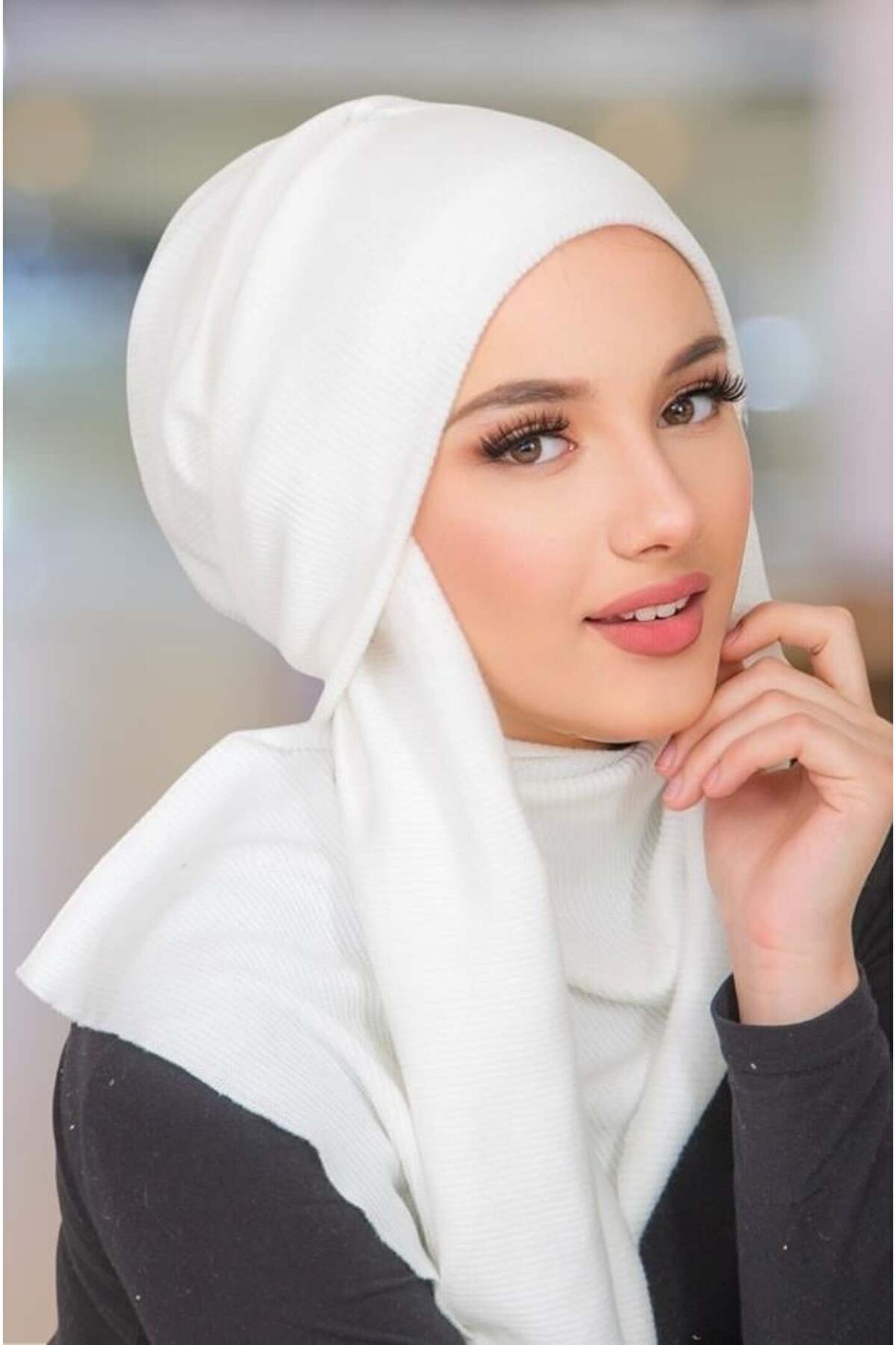 Aişe tesettür Beyaz Kelebek Bone Şal