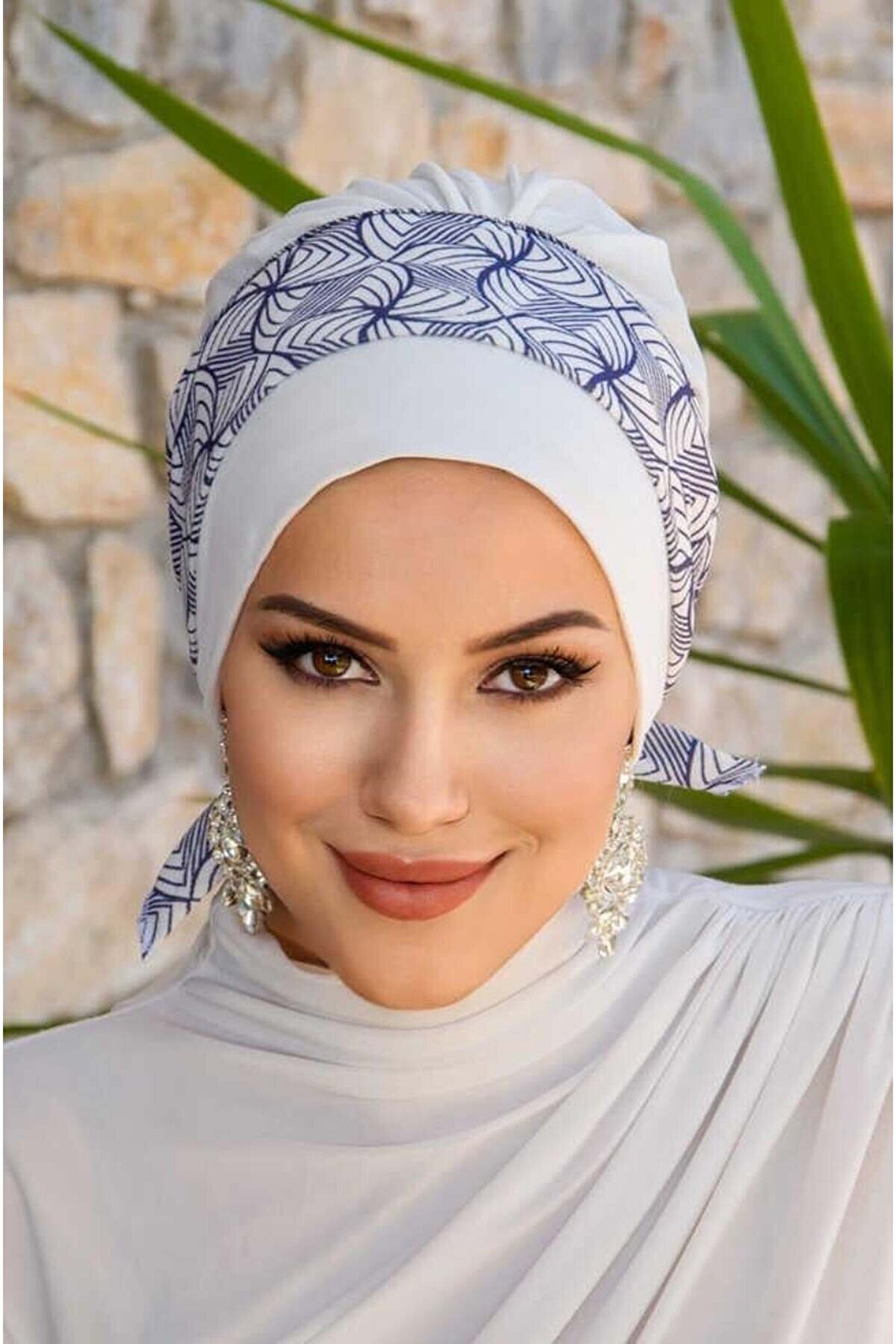 Aişe tesettür Beyaz Lacivert Spiral Desen Bantlı Bone
