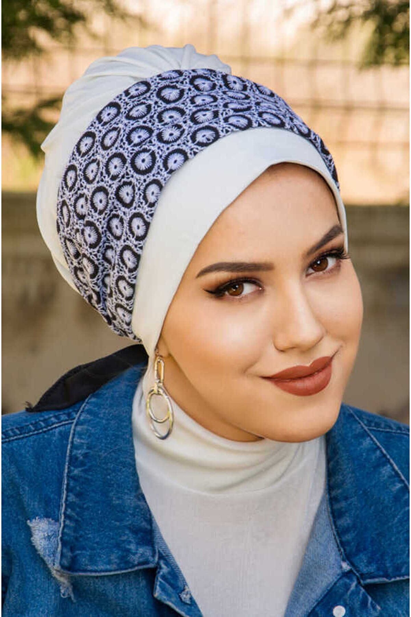 Ekru Tokalı Tesettür Bone