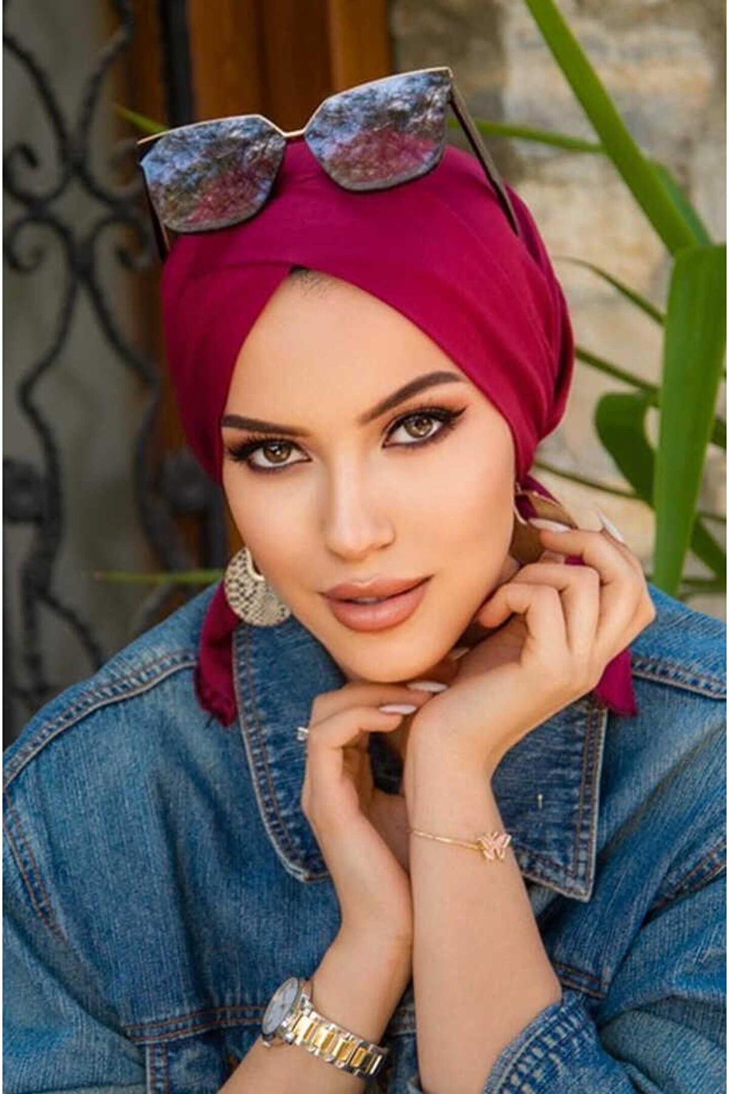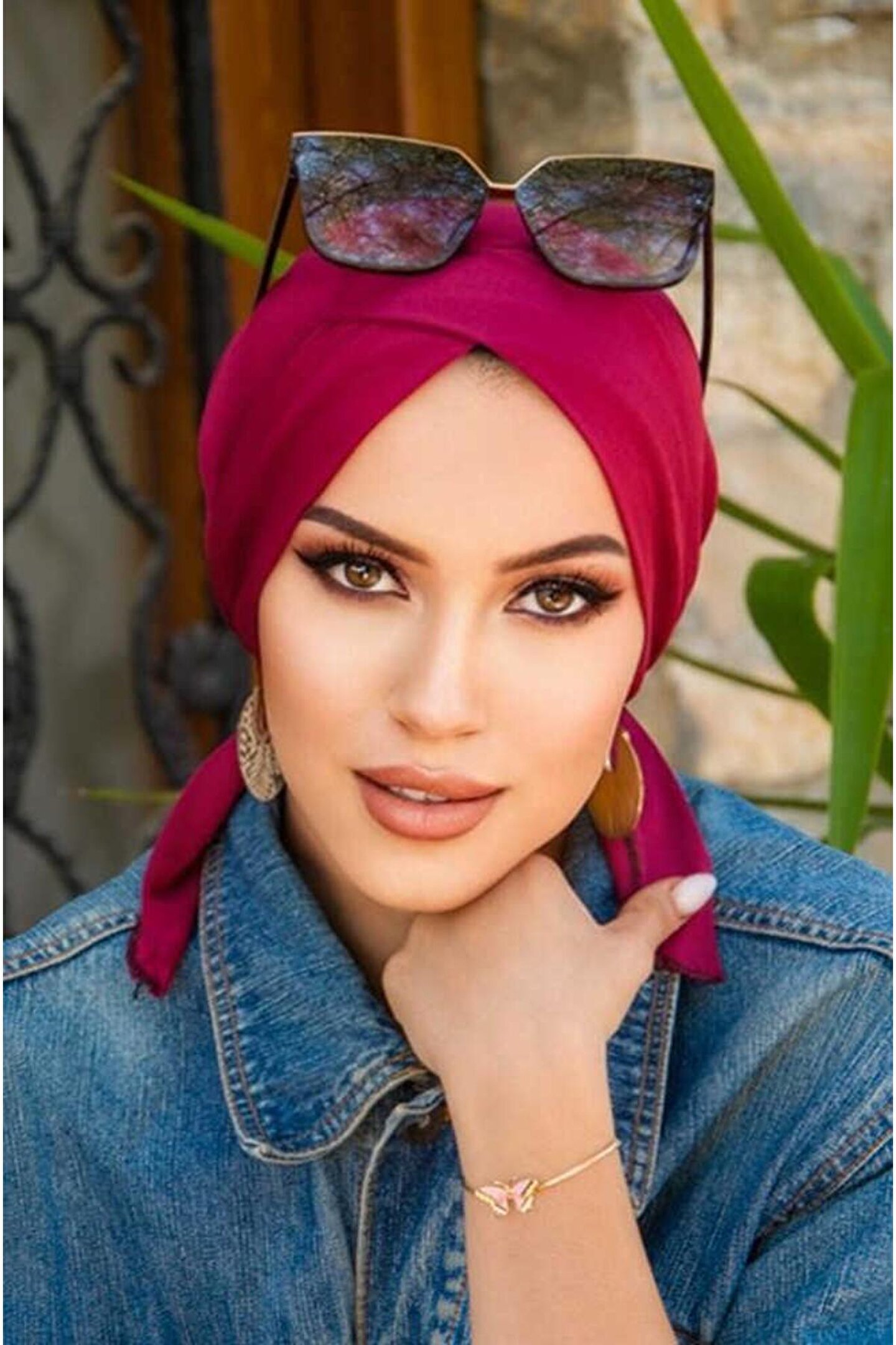 Aişe tesettür Bordo Çapraz Deniz - Havuz Deniz Bonesi