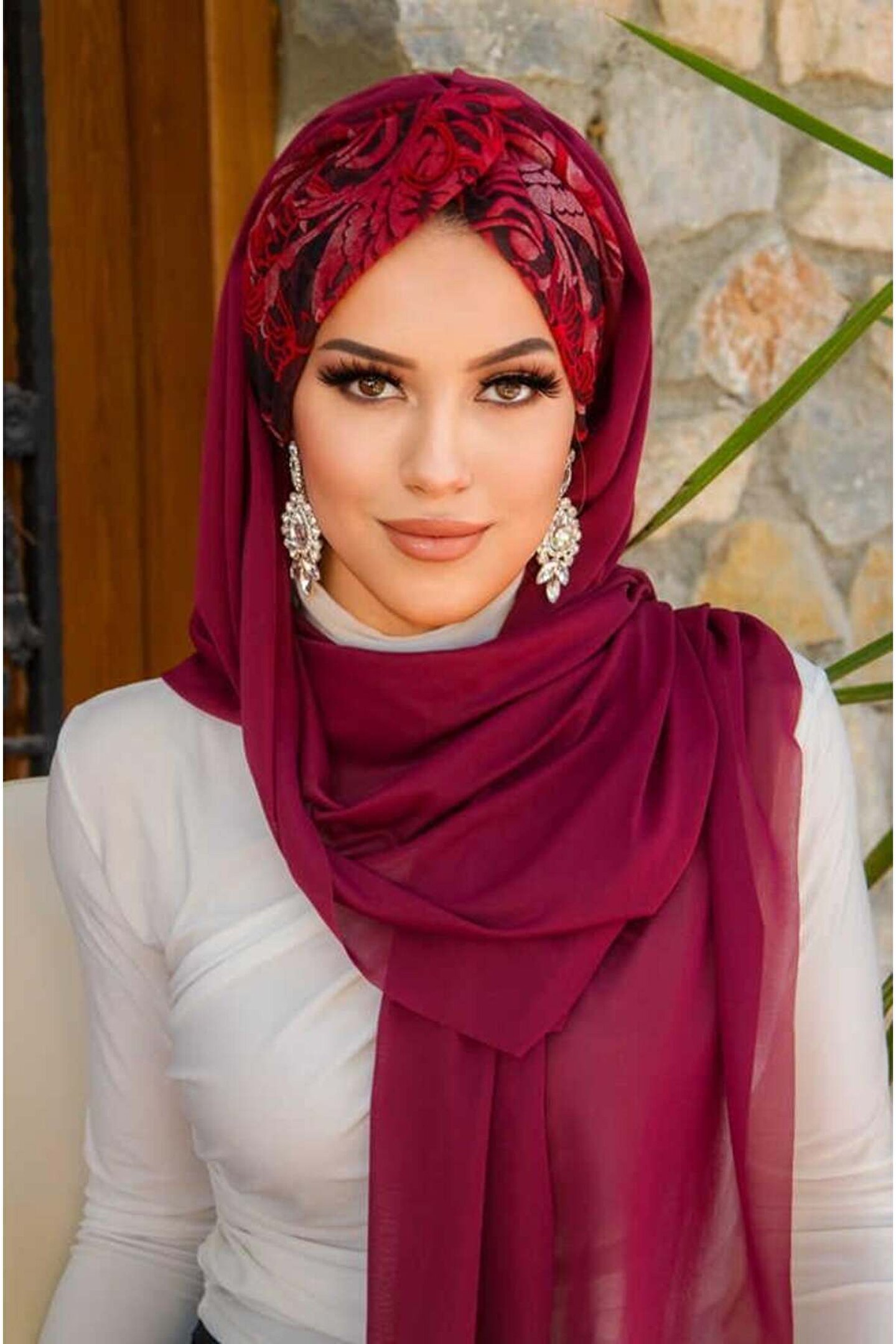 Aişe tesettür Bordo Çiçek Desen Burgu Hazır Şal