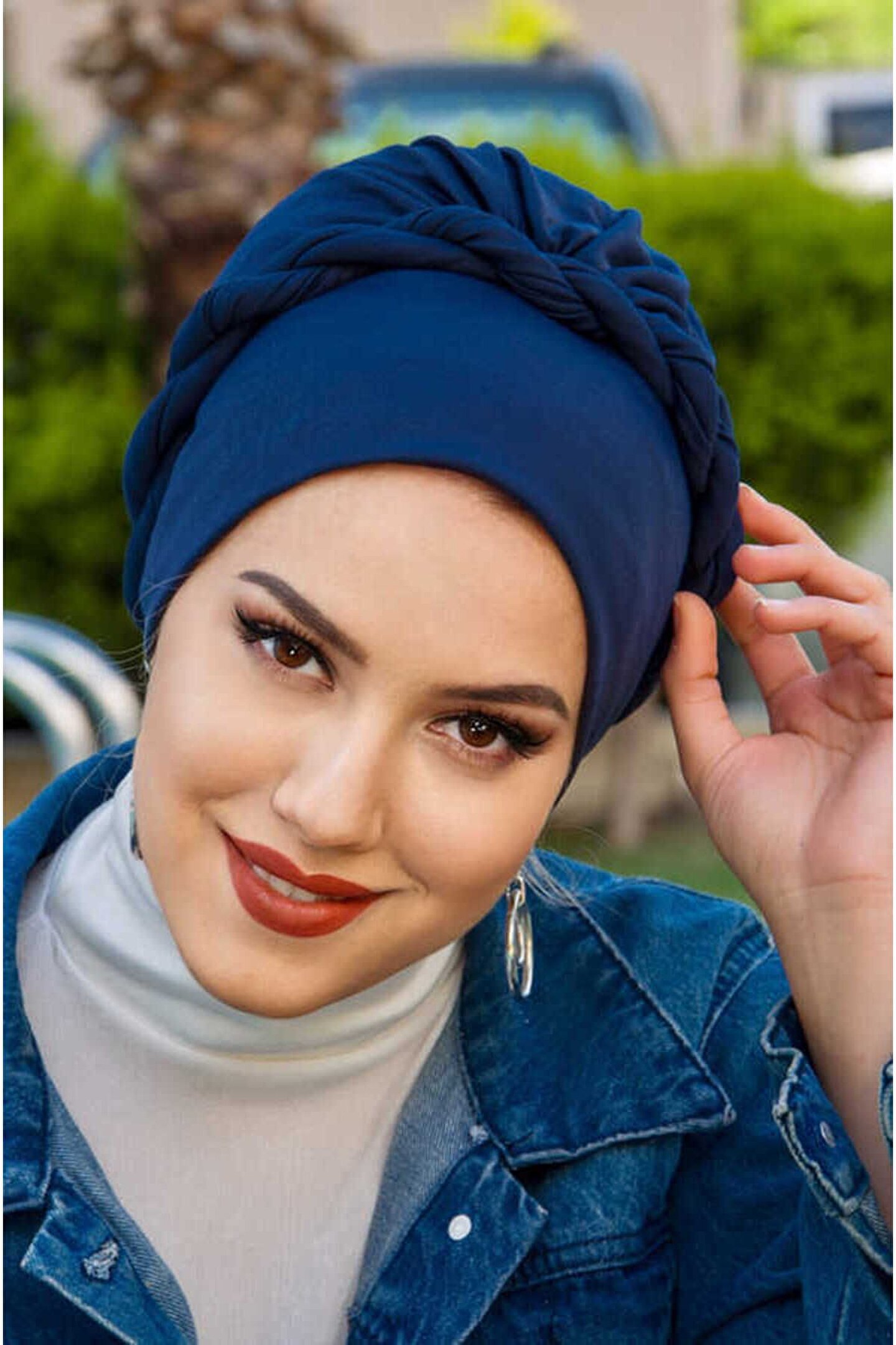 Lacivert Aksesuarlı Atkılı Abiye Bone