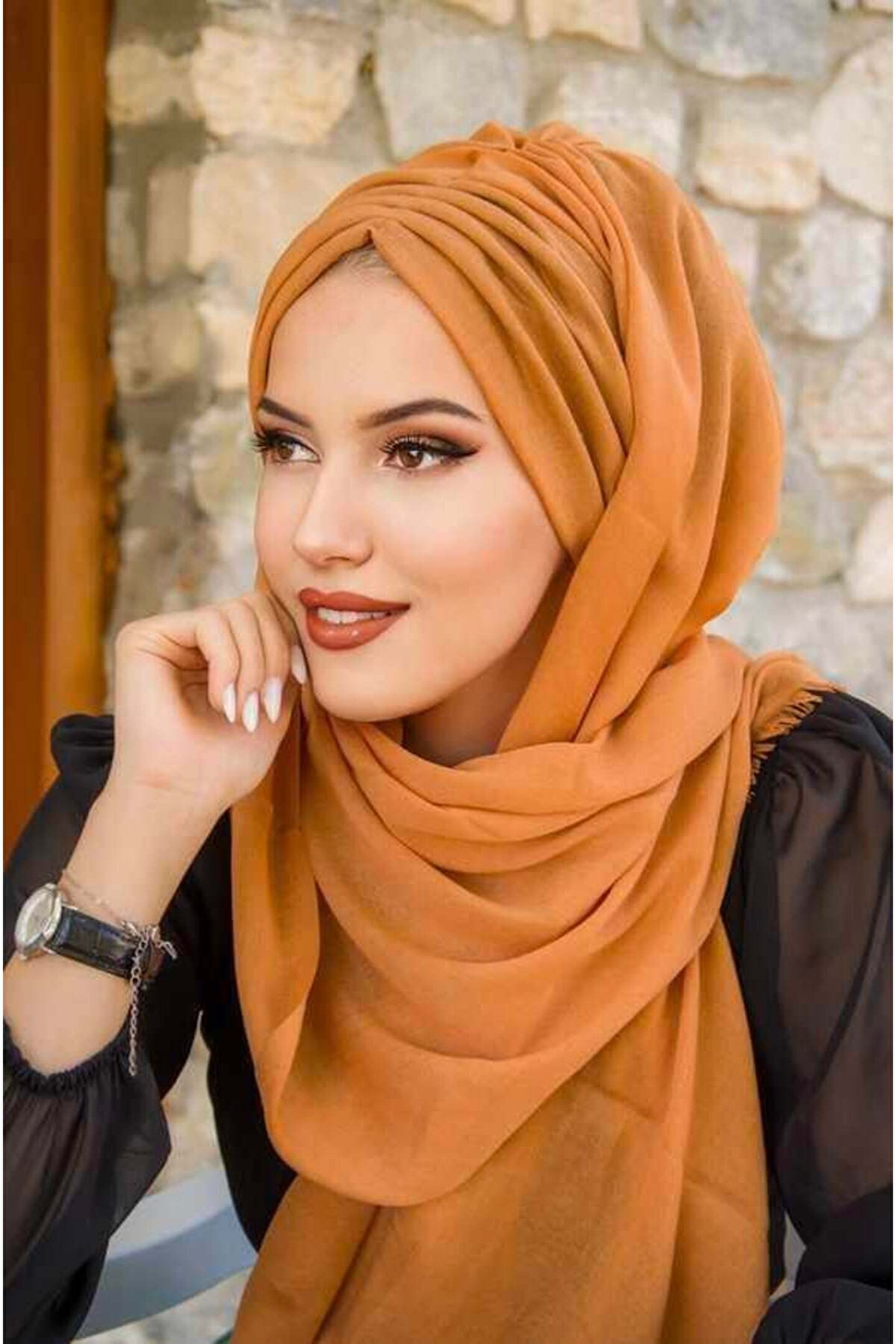 Aişe tesettür Camel Büzgülü Hazır Şal