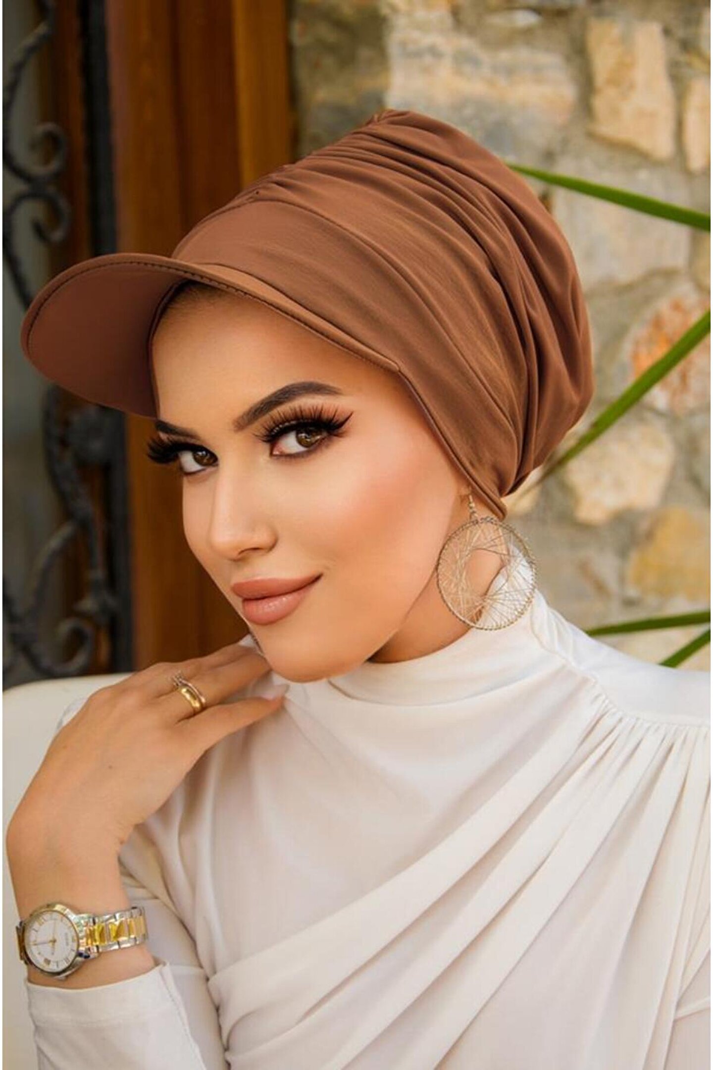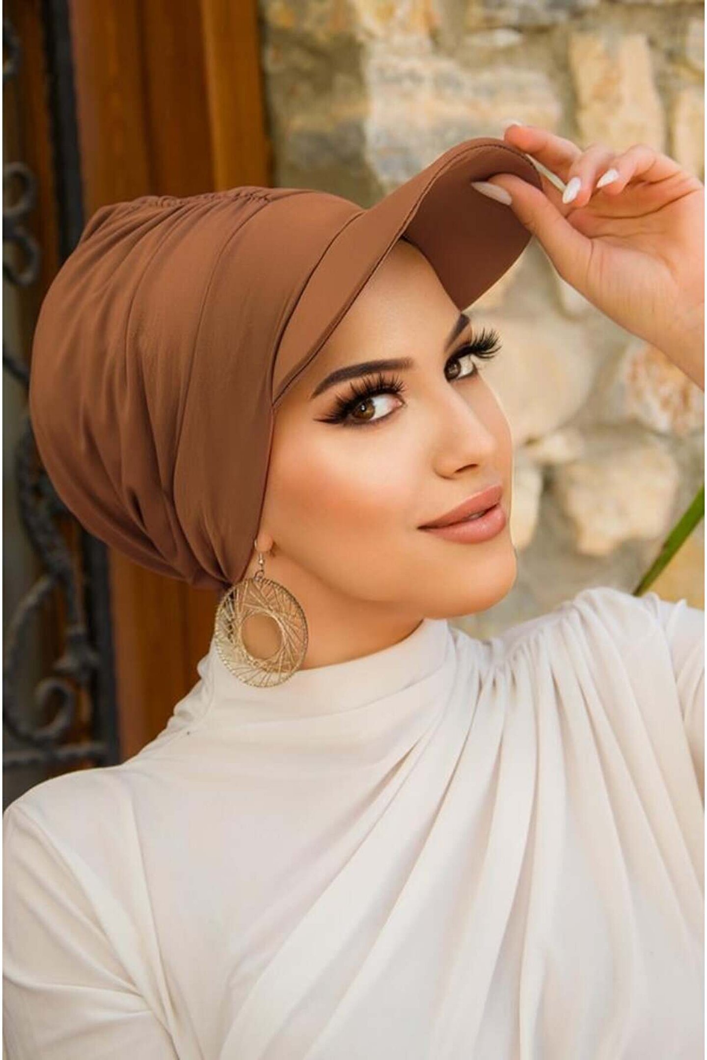 Aişe tesettür Camel Havuz - Deniz Şapkası Mayo Üstüne Kullanılabilir