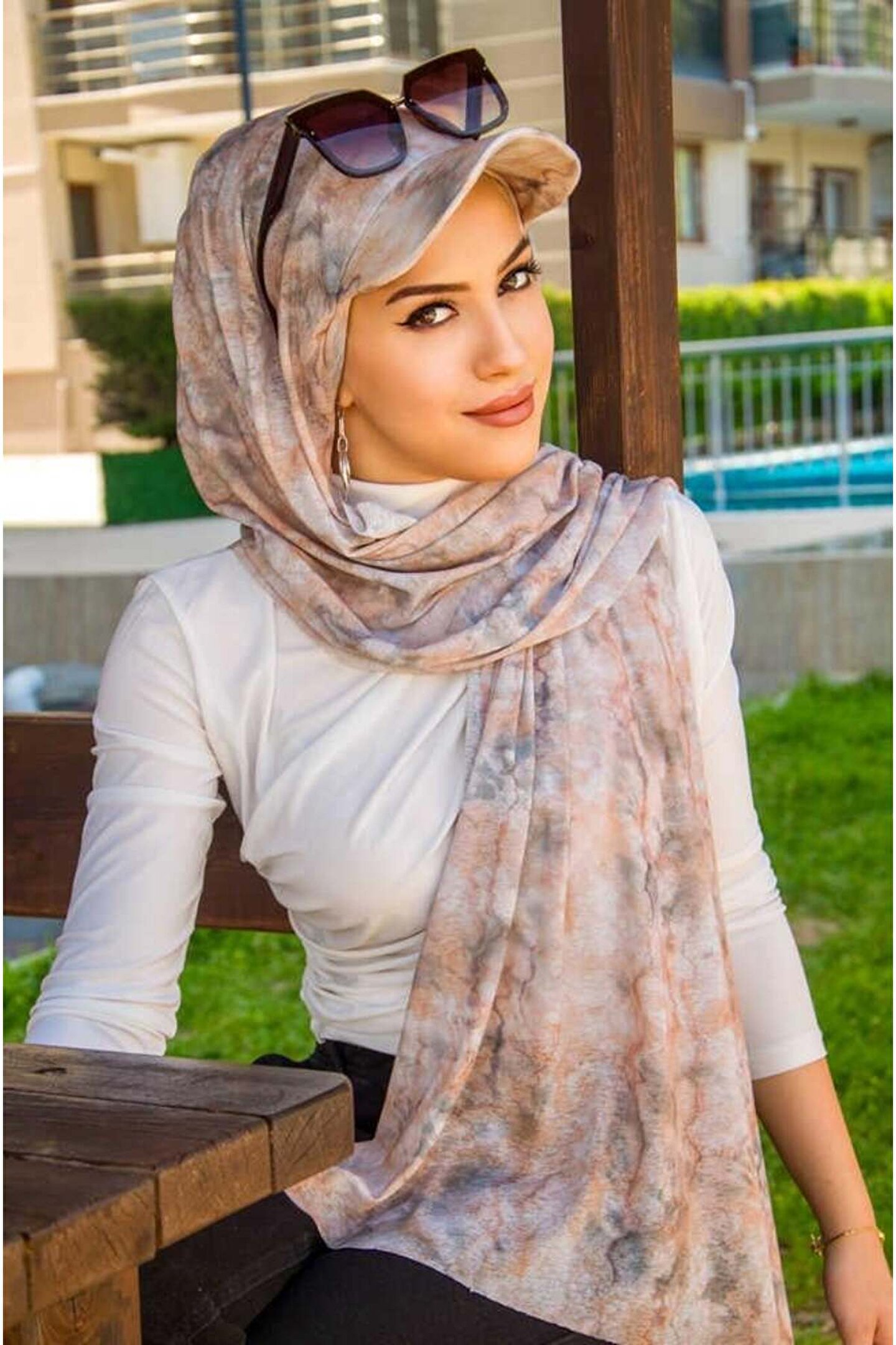 Aişe tesettür Ebruli Desen Kepli Bandana Şapka Şal