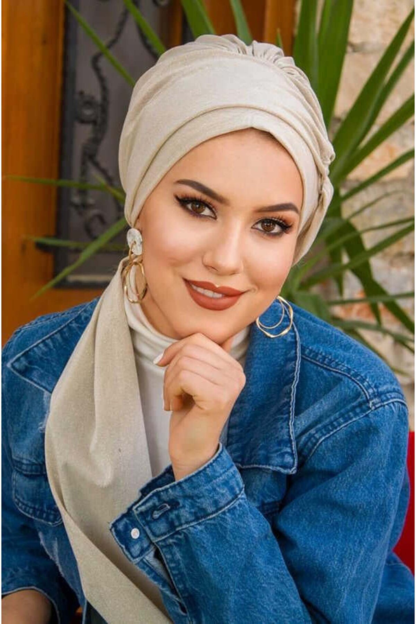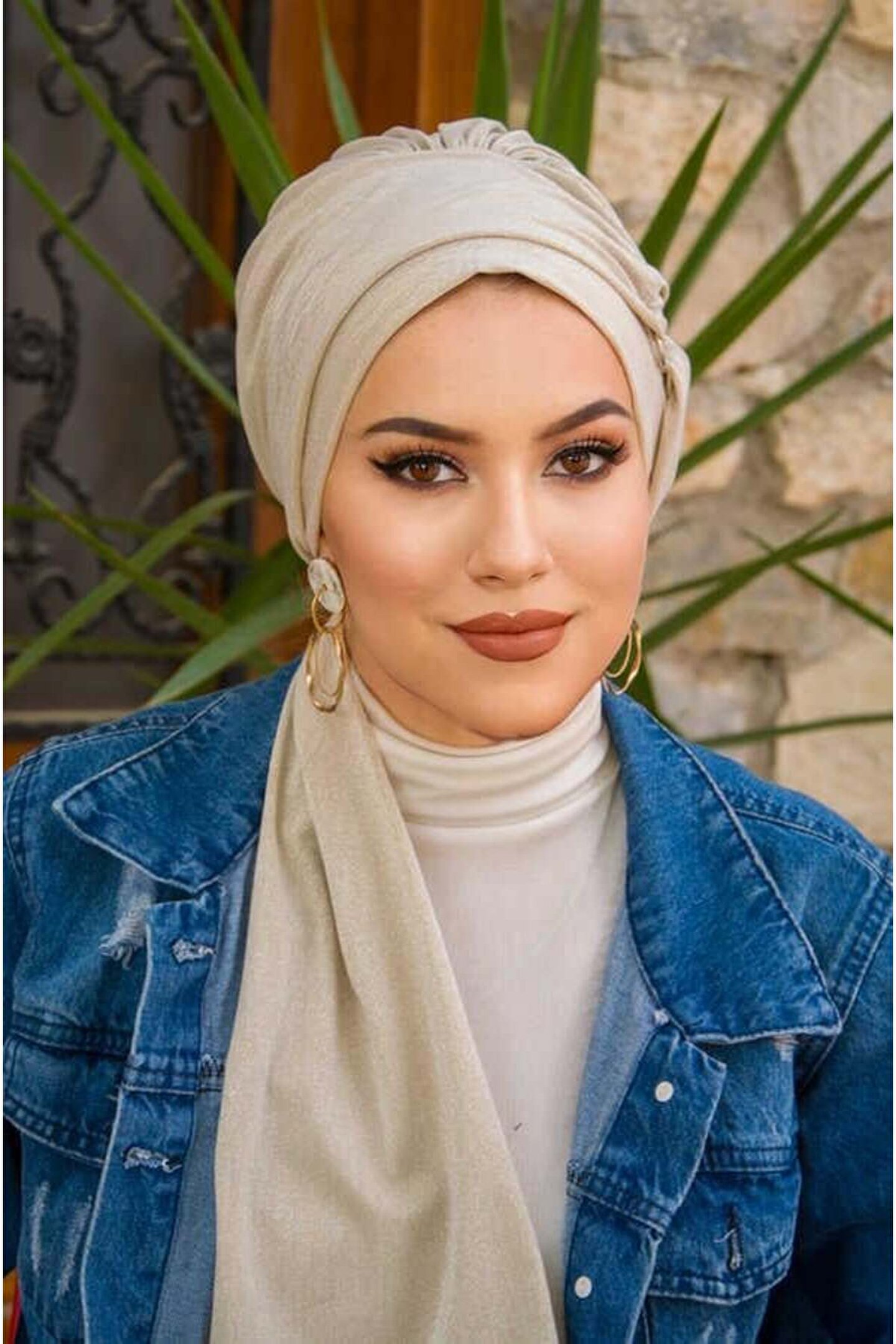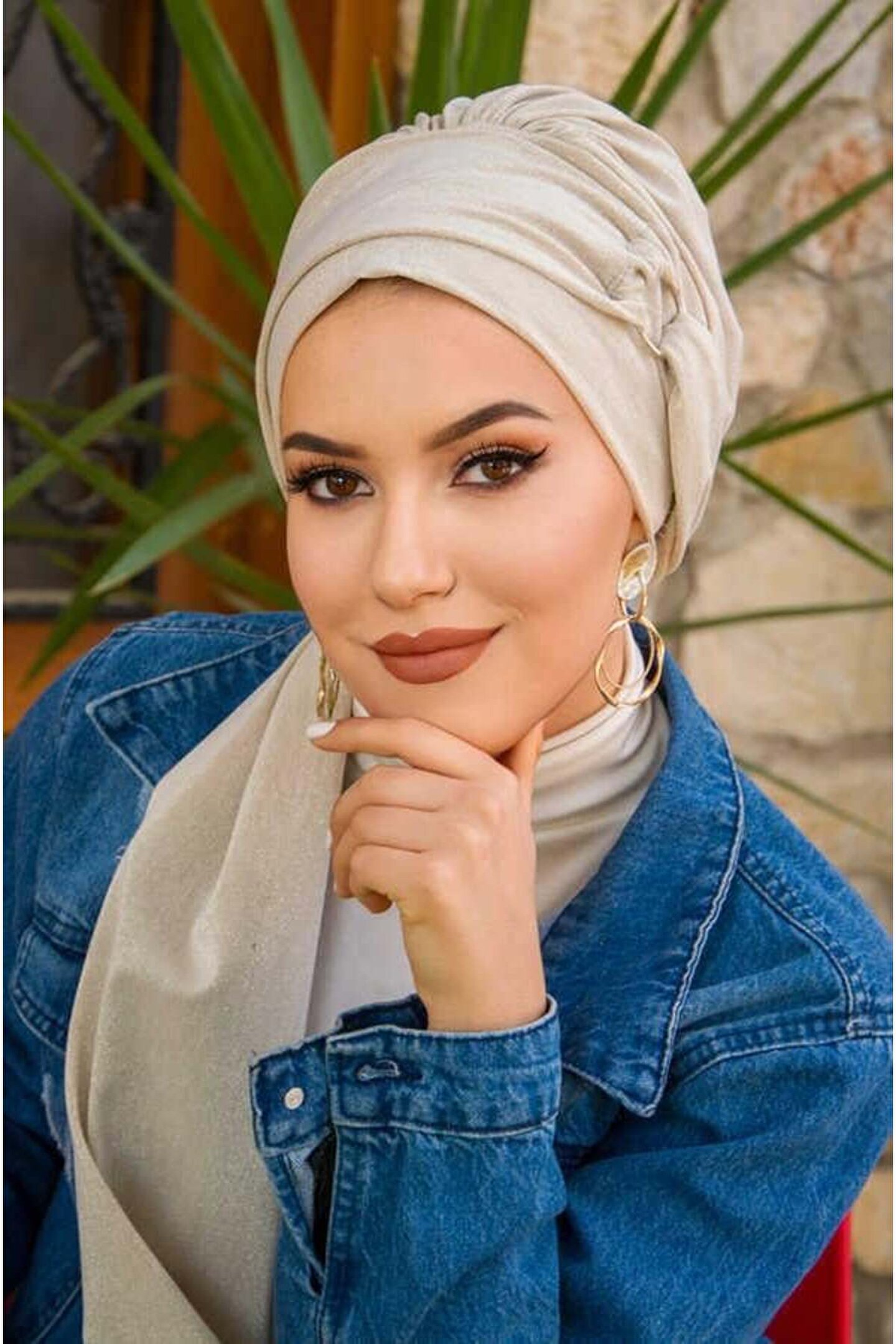 Aişe tesettür Ekru Tokalı Tesettür Bone