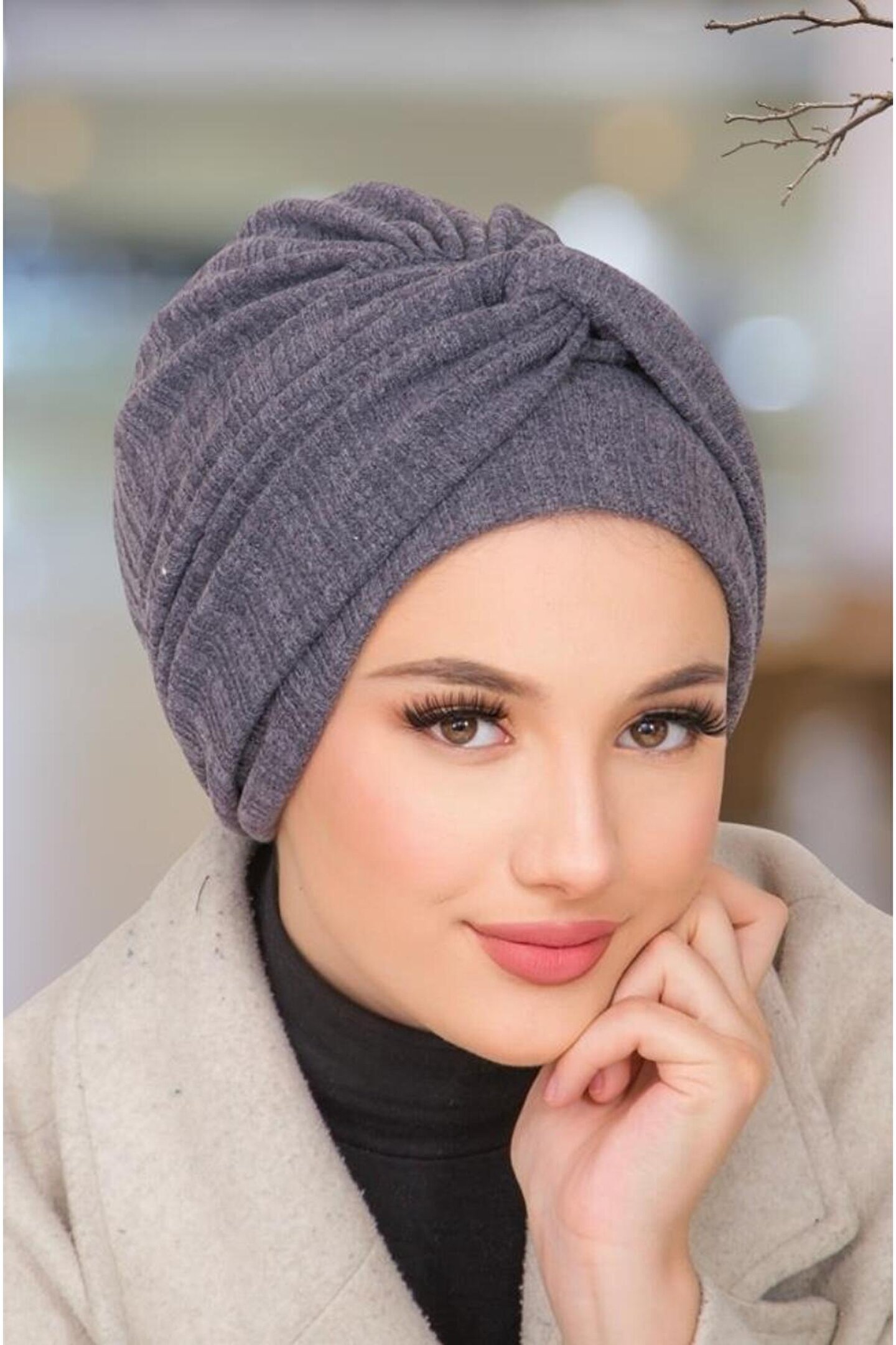 Aişe tesettür Füme Fitilli Burgu Detaylı Bone
