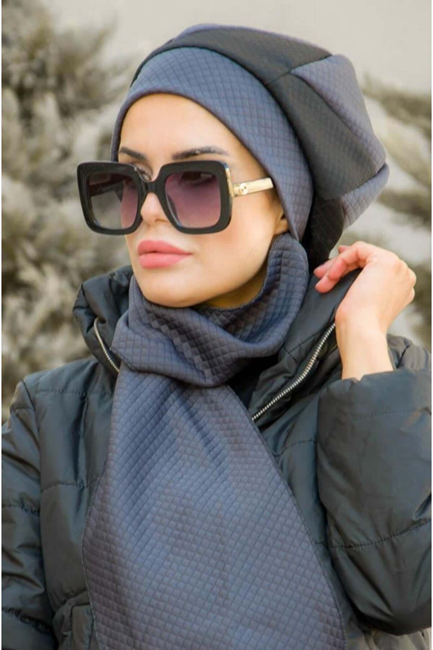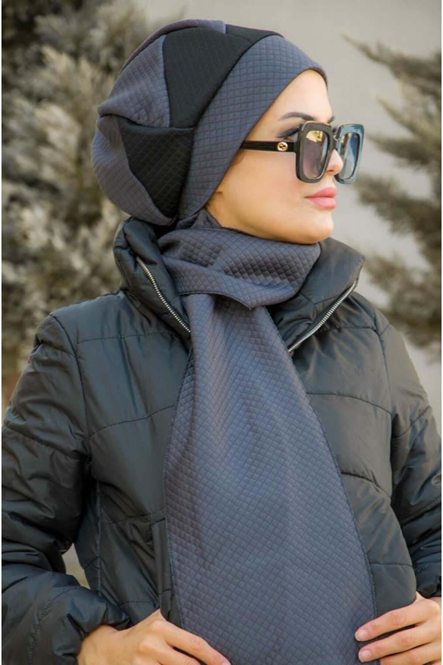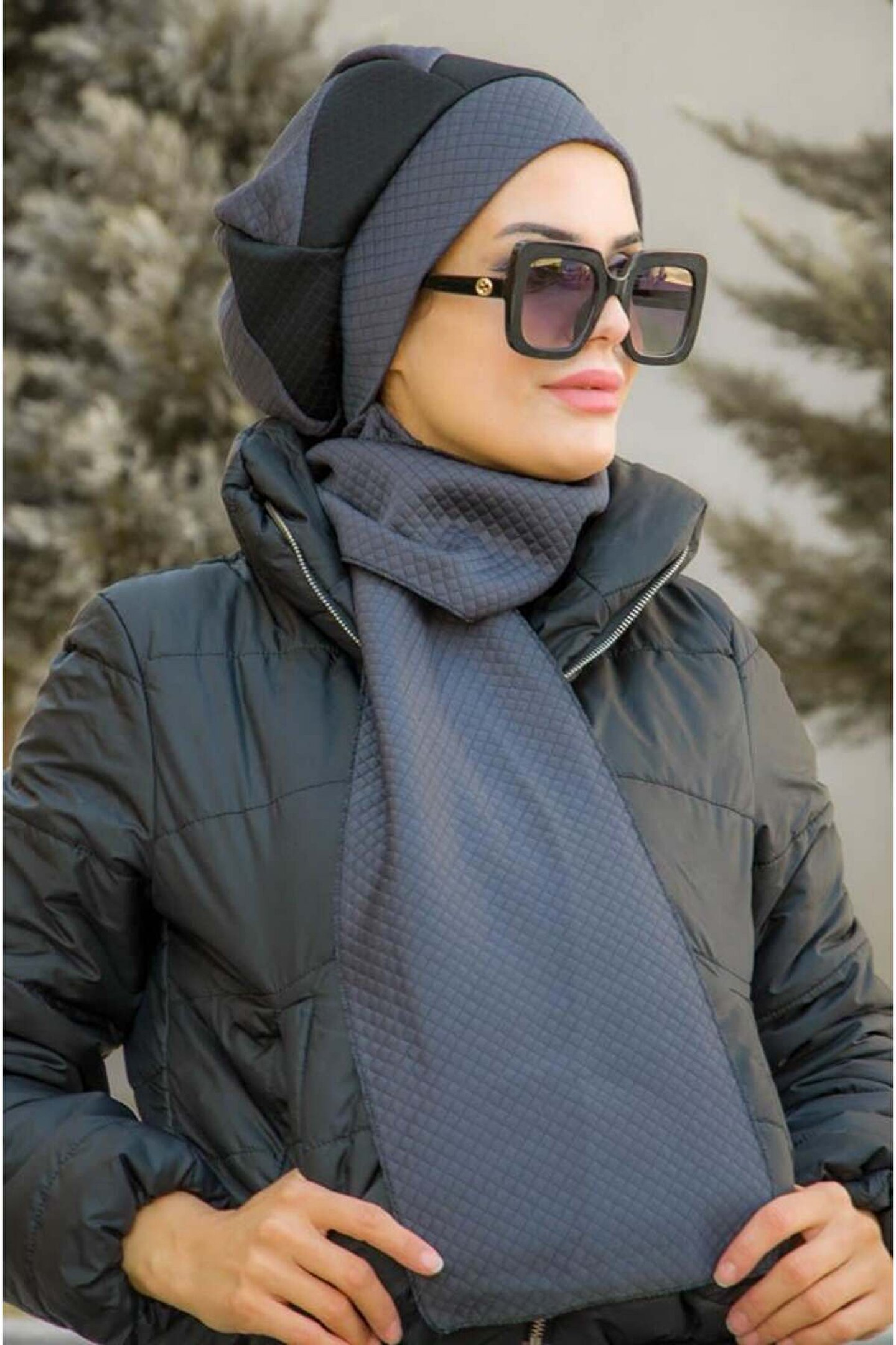 Aişe tesettür Füme Siyah Kapitone Tesettür Bere