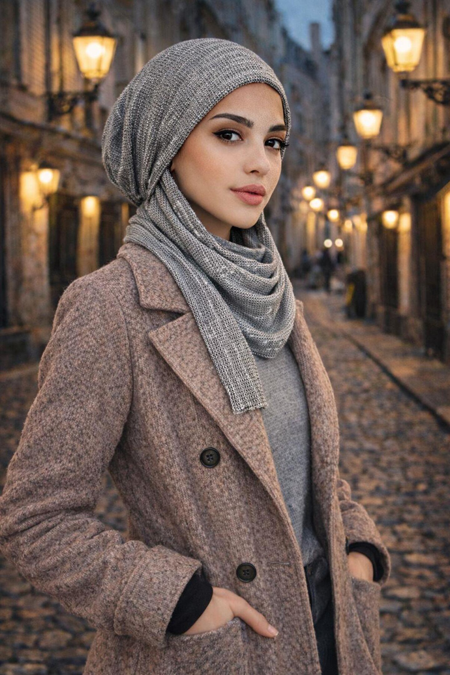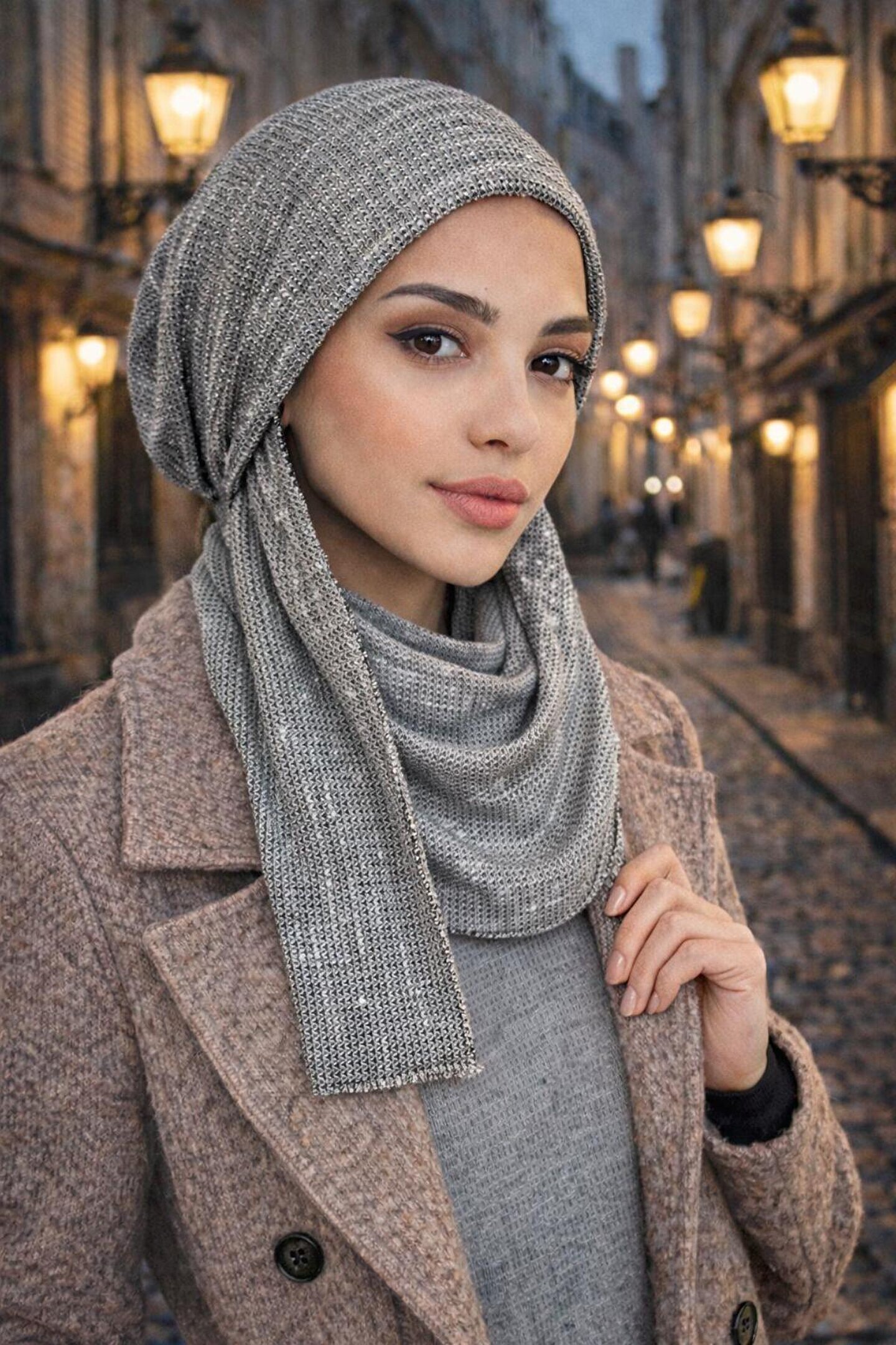 Aişe tesettür Gri Desen Kelebek Bone Şal